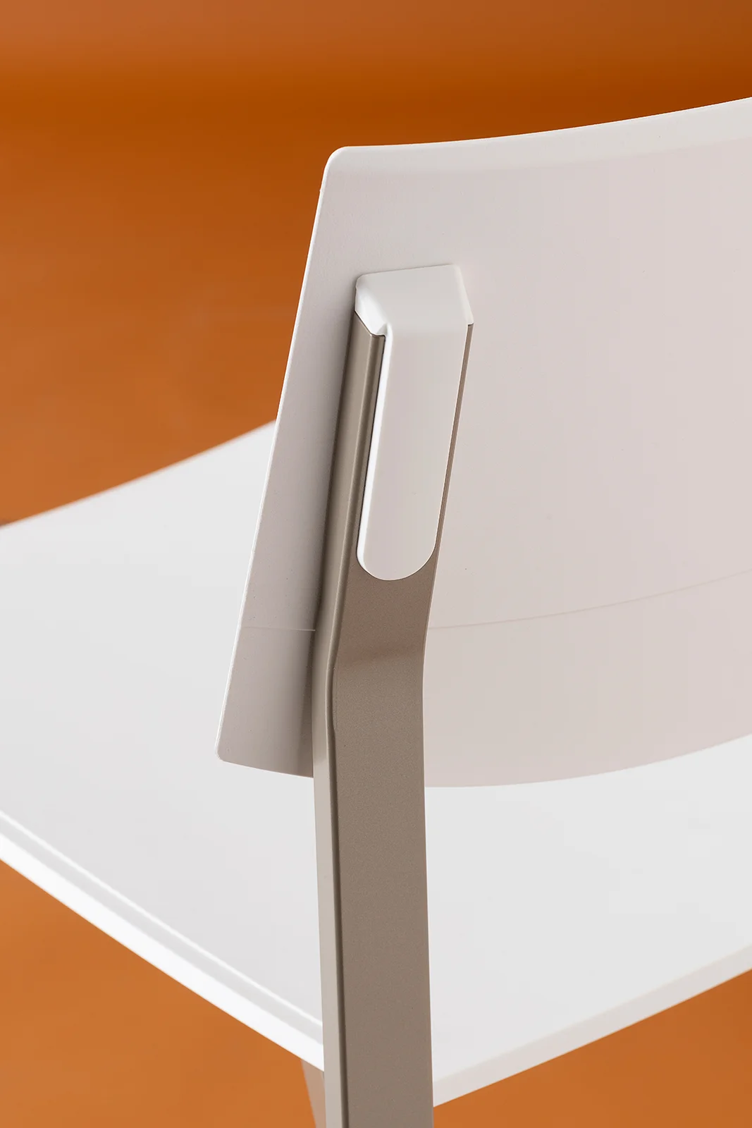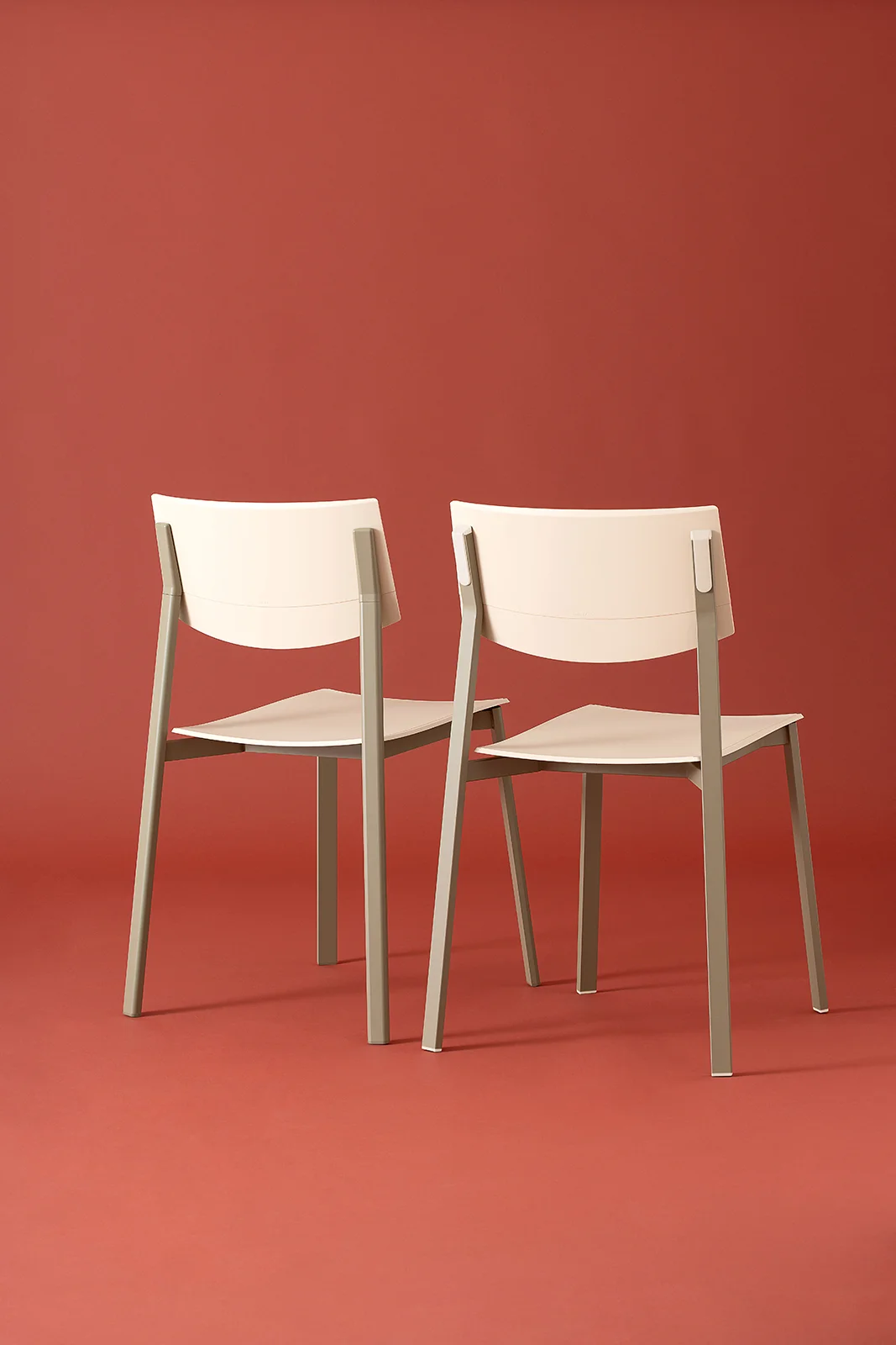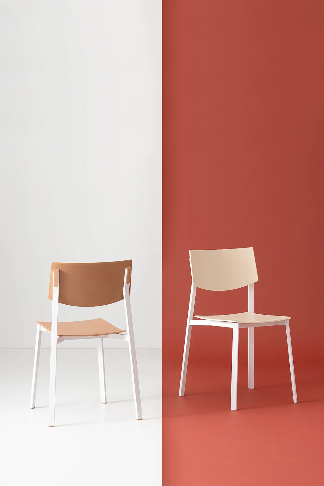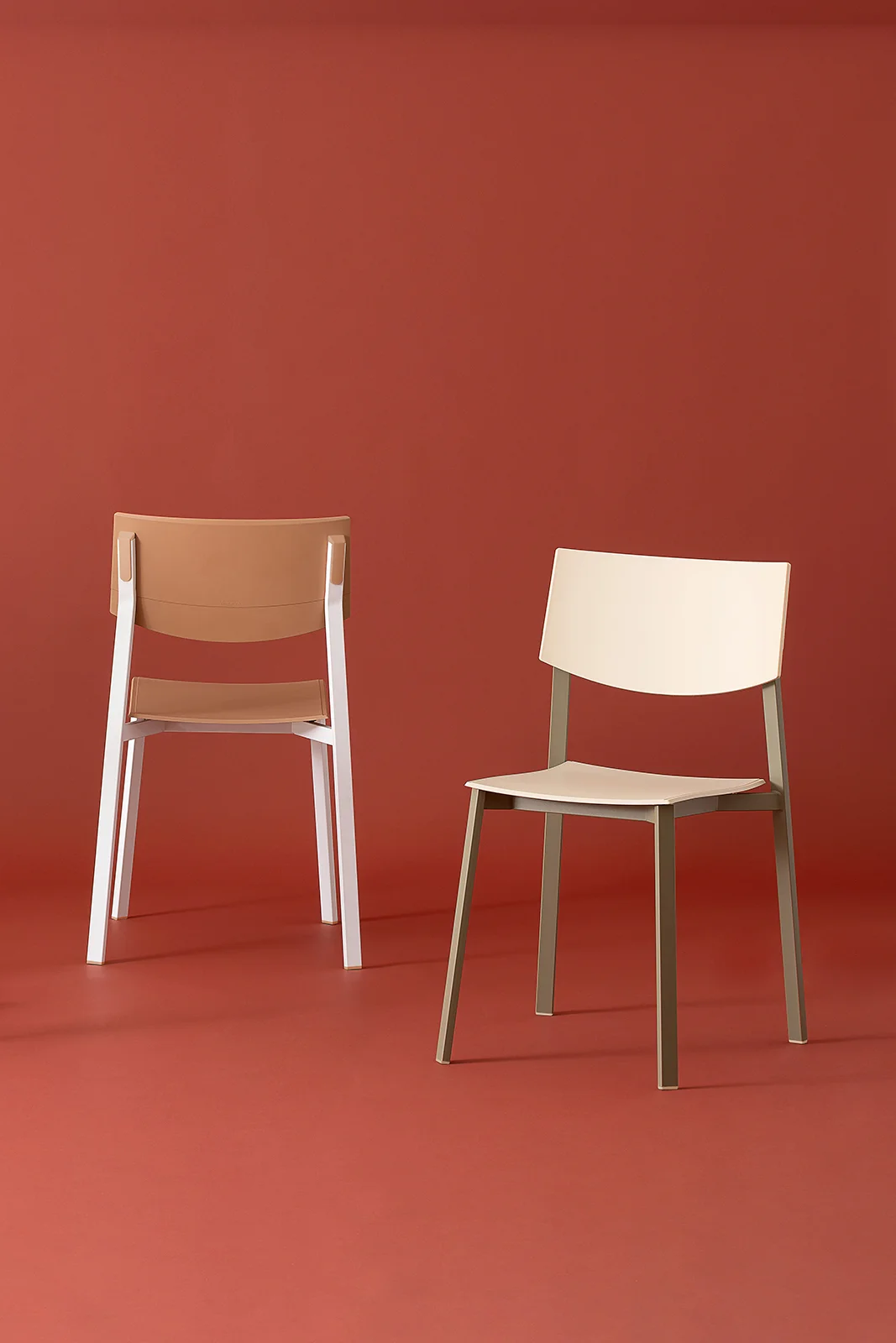 The collection is completed by Beba Young, a chair that focuses on formal purity and intelligent technical details. The rectangular section metal frame incorporates polypropylene caps that conceal the fastening points, while the seat and backrest are made of post-industrial recycled plastic. Lightweight and stackable, it is designed to withstand intensive use without compromising on color. A perfect mix of sustainability and functional design for contemporary spaces.