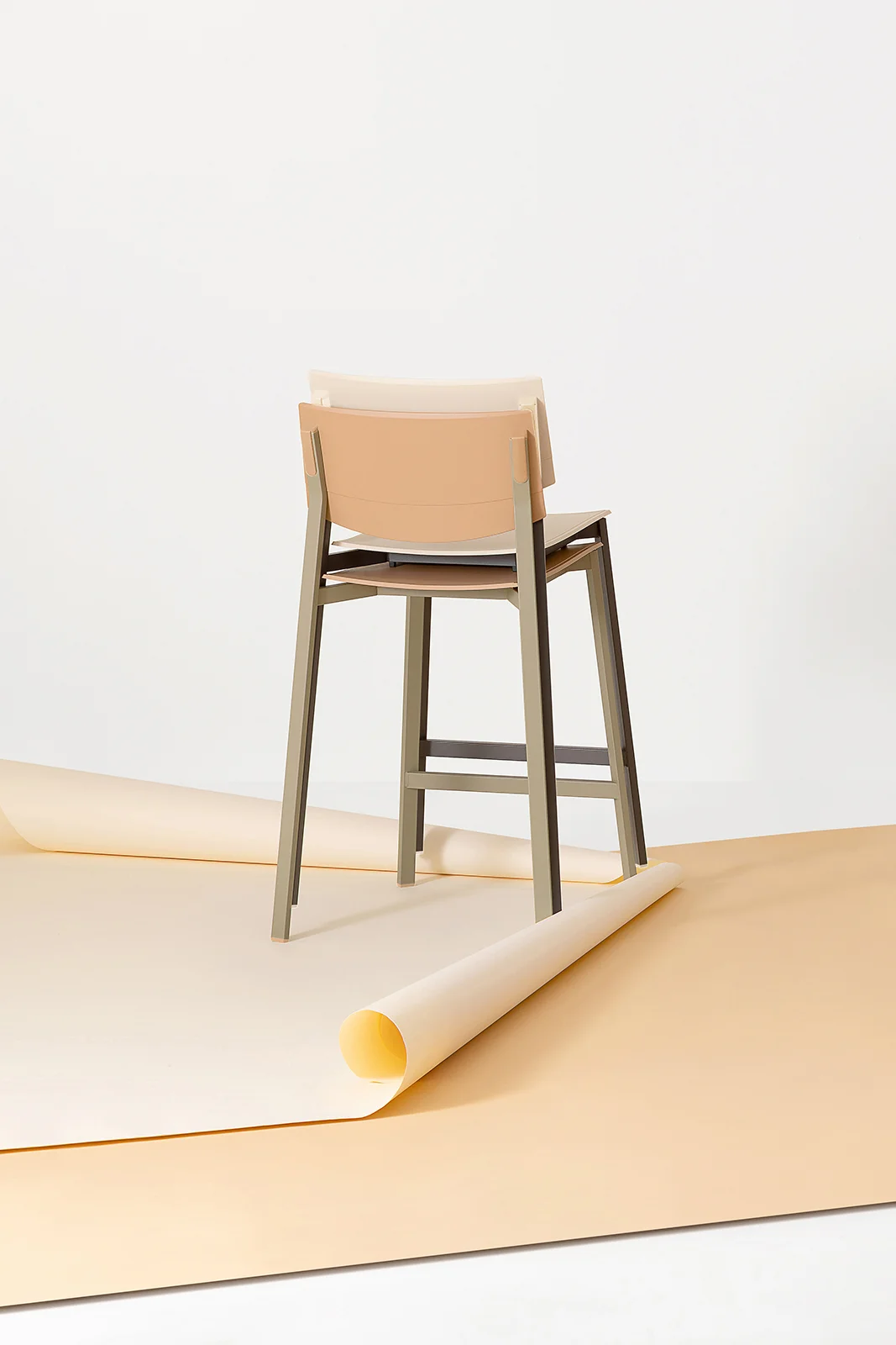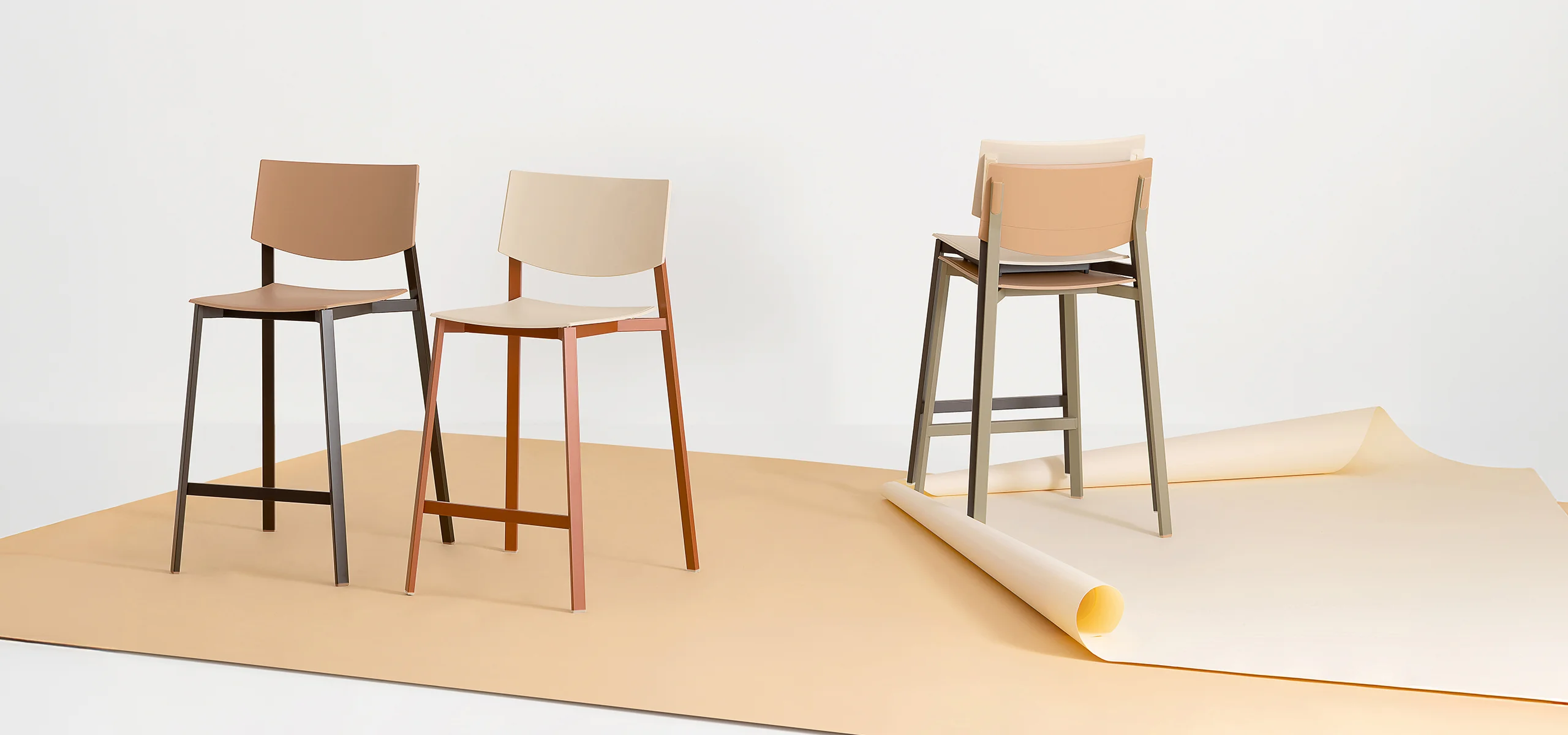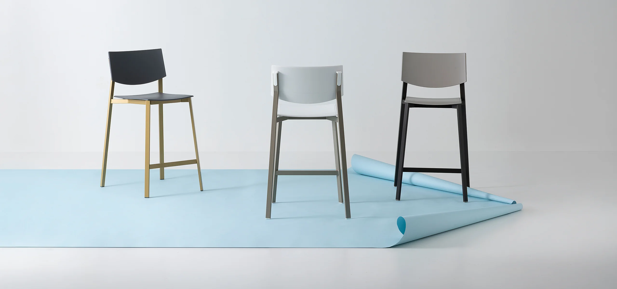 Characterized by a rectangular-section metal frame, the Beba Young stool combines industrial aesthetics with practicality. Matching polypropylene details conceal the backrest joints, offering a fluid and modern design. Made from recycled materials, this model is available in various heights and colors to suit any counter. Its stackable nature and material durability make it ideal for both commercial and domestic settings.