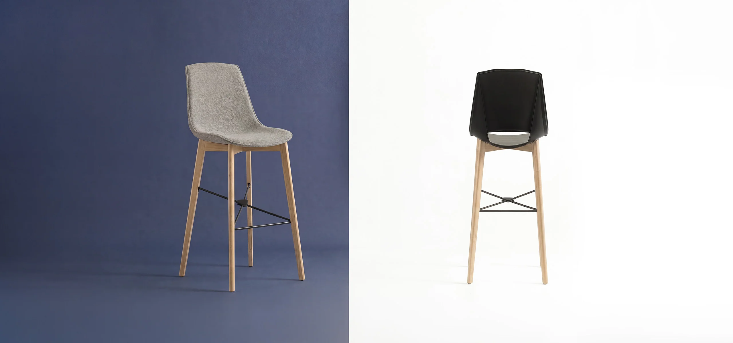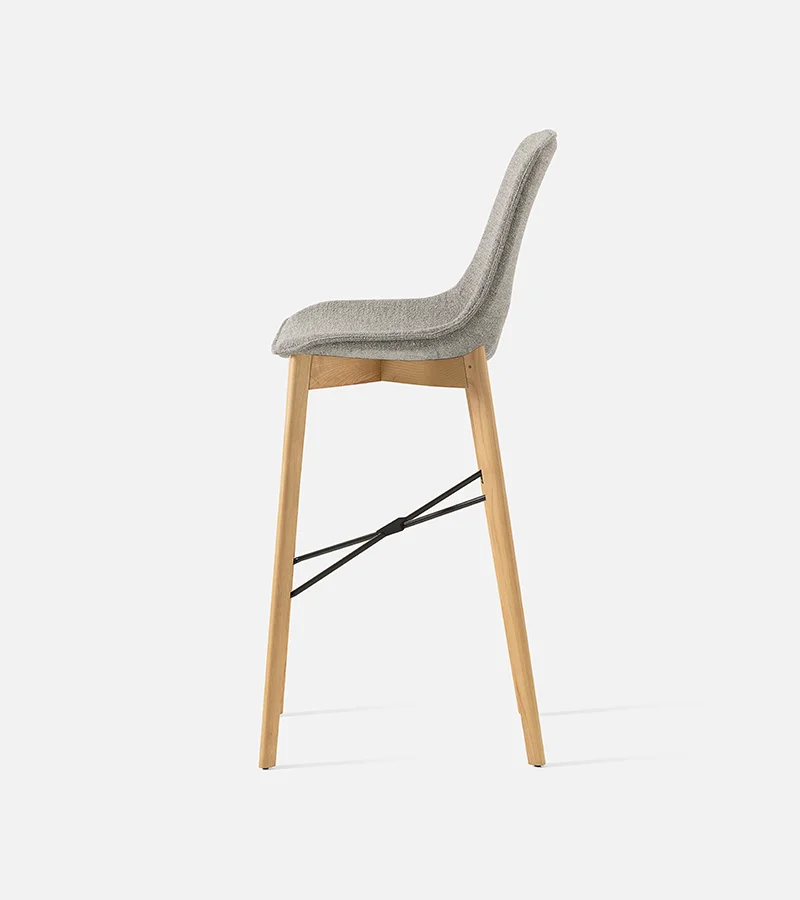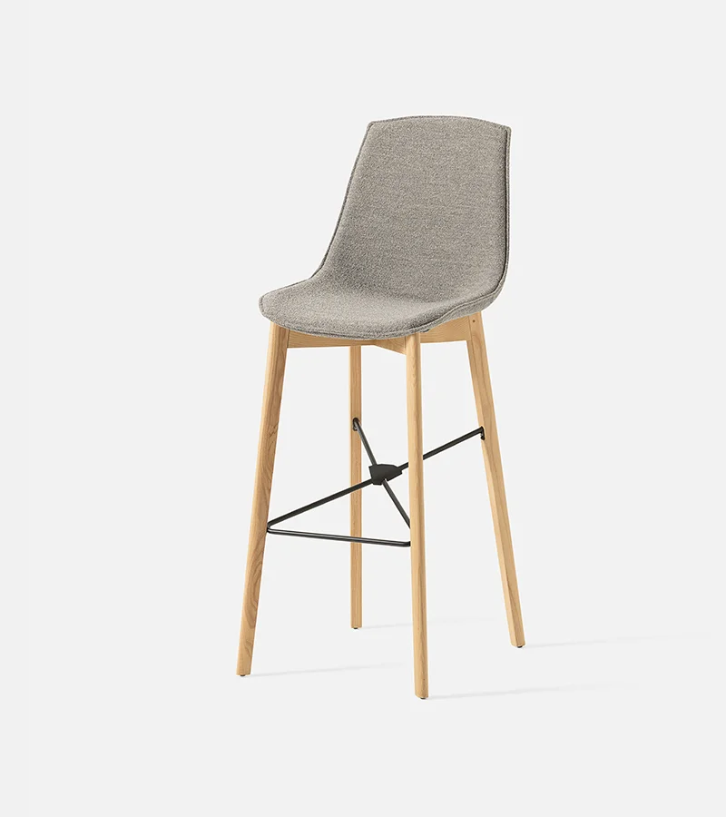 The Eva 7 stool represents the warmest expression of the line, thanks to its solid wood frame. Designed for sophisticated domestic environments or venues with a welcoming atmosphere, this model combines the resistance of ash with the technology of the polypropylene shell. The integrated footrest and studied proportions guarantee a firm and long-lasting seat. A design piece that enhances spaces through the quality of the natural materials employed.