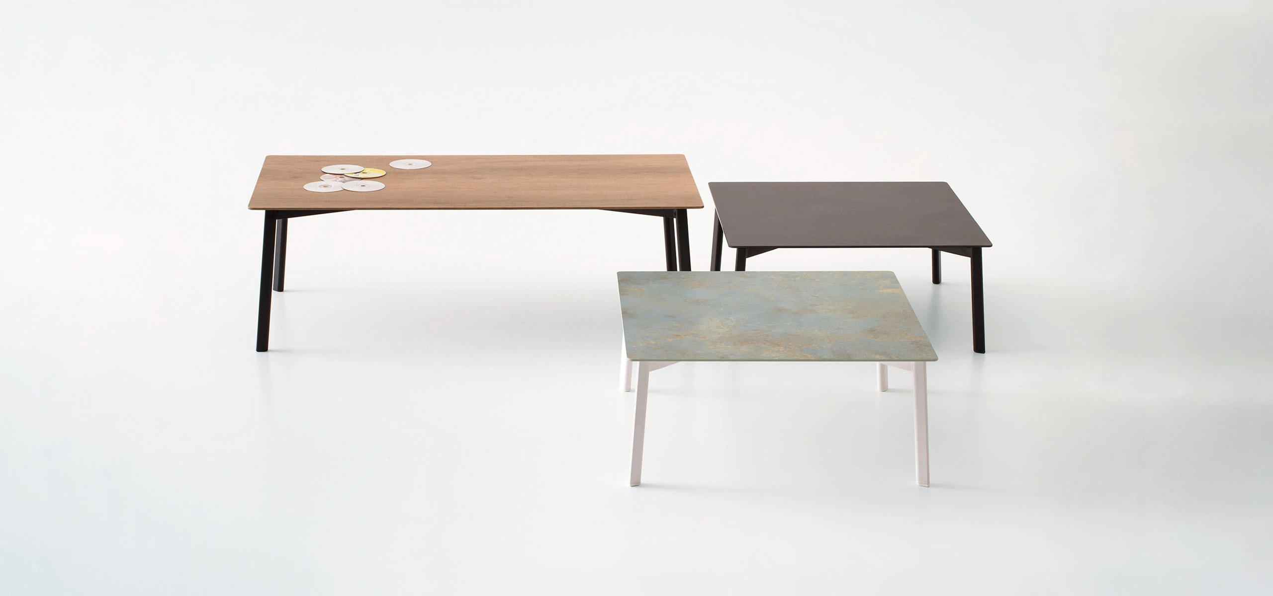 Gentle geometry. Uncompromising character. Tata Table plays with volumes and the iconic teardrop-shaped profile to give rhythm to your relaxation. Customize tops and heights to create your own balance.