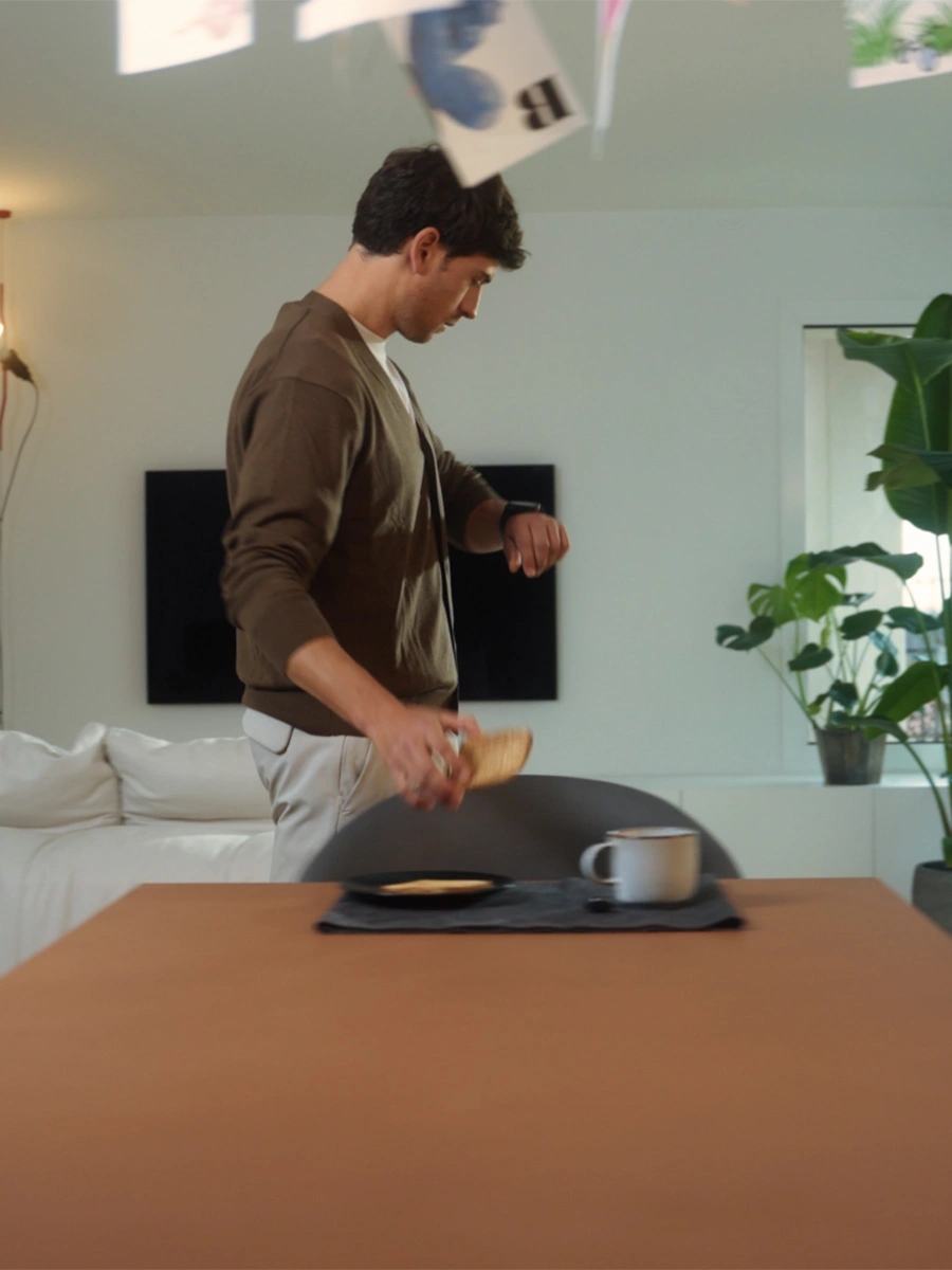 Our campaign opens with a video that tells the story of a subject with whom we can identify: his routine, dictated by scheduled appointments, is interrupted, and slowed down once the subject sits in the Beba chair, which becomes the medium through which he expresses his individuality and 'feeling'.
