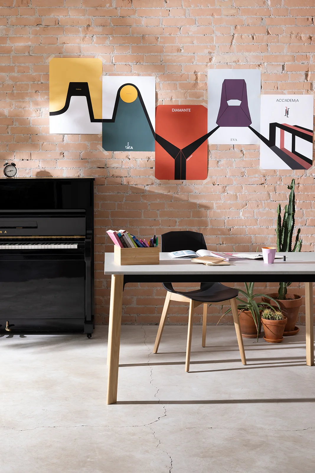 A table characterized by rounded legs that soften the frame. Available in painted steel or wood, the legs become a distinctive element and engage with a wide range of tops. Available in several sizes, Otello adapts to domestic contexts and collective spaces. It is a design from the Concept collection.