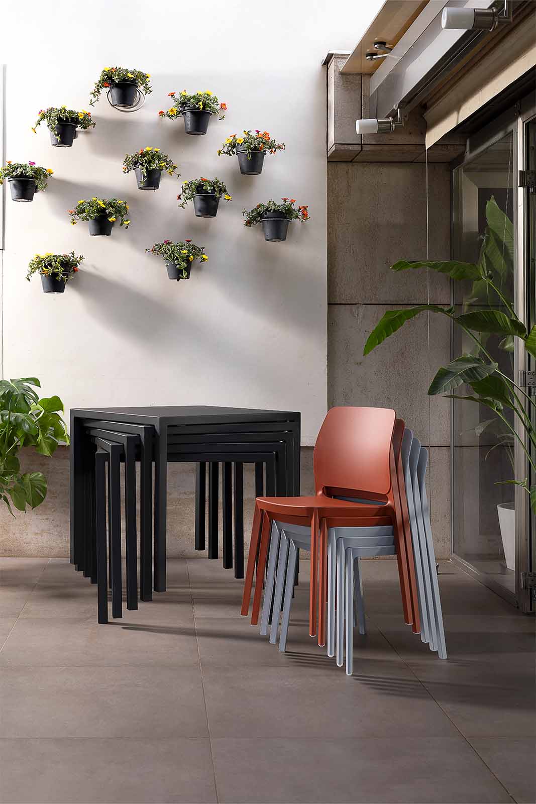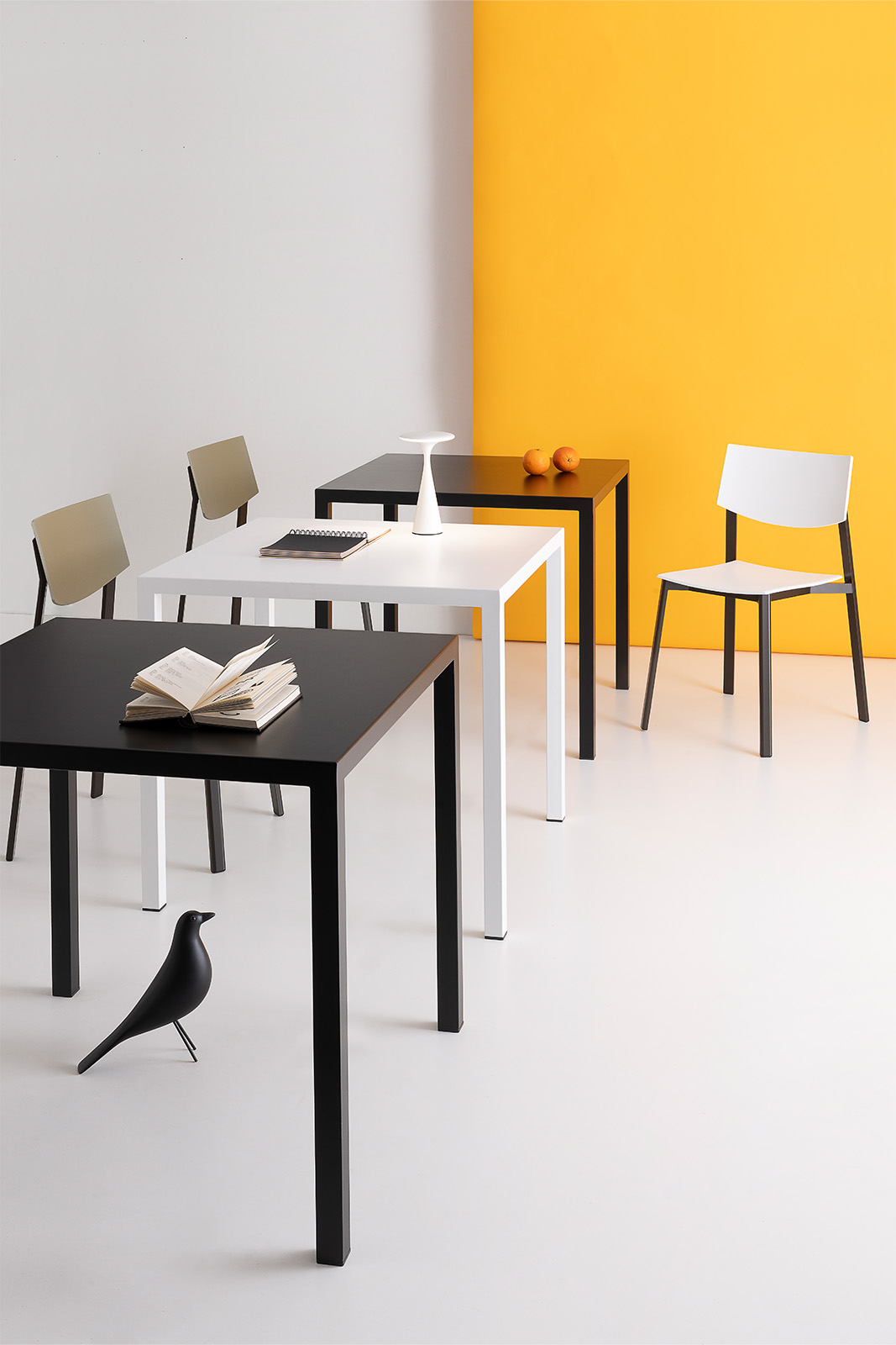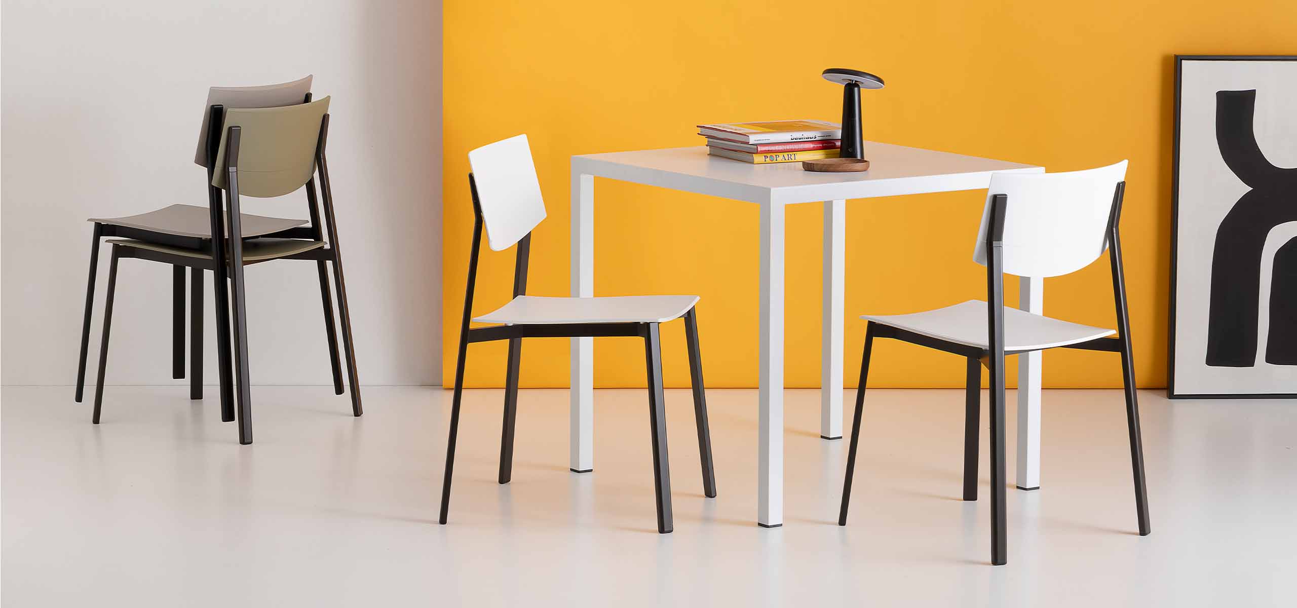Plana is a stackable table made entirely of sheet steel, designed to guarantee maximum resistance and durability. Available in different sizes, heights and colors, it adapts with ease to collective and domestic spaces.