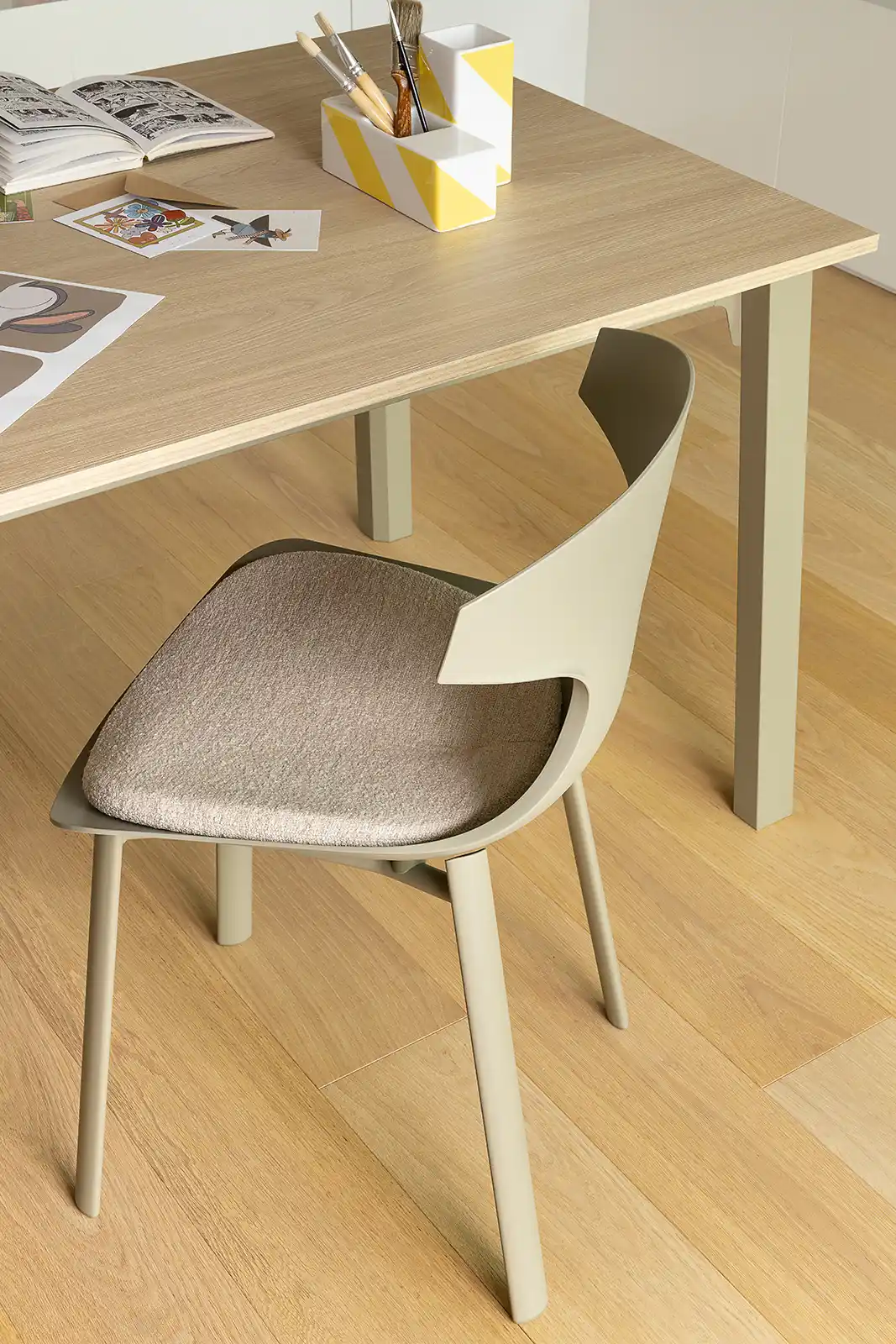Pop is a seat with distinctive lines, characterized by a solid elliptical-section steel frame and a polypropylene one-piece shell available in various colors. Its enveloping design transforms it into a solution that is not only practical but also aesthetically sophisticated, capable of integrating with extreme ease into domestic and professional settings. For extra comfort, there is a removable, water-repellent cushion designed to resist wear and tear and last over time.