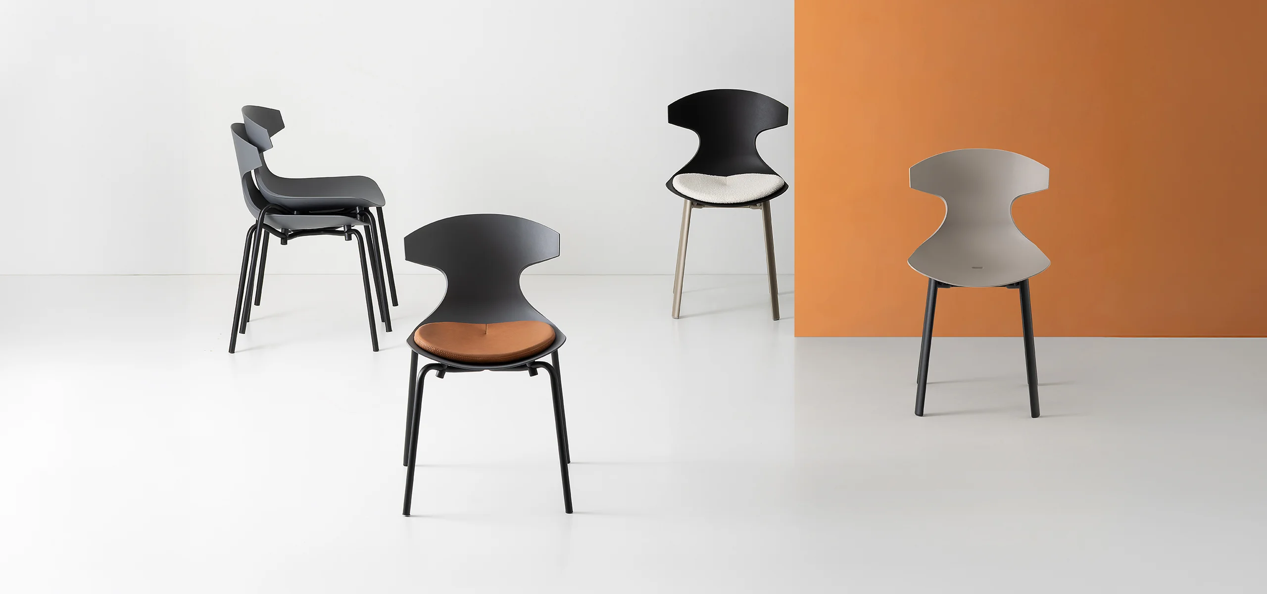 Pop Young expands the collection, maintaining its enveloping lines in a stackable version with a round-section tubular frame. The polypropylene one-piece shell, available in different colors, ensures simplified management of domestic and collective spaces without compromising on style. For superior comfort, there is a removable, water-repellent and washable cushion designed to resist wear and tear and last over time. A dynamic solution capable of integrating aesthetics and everyday functionality.