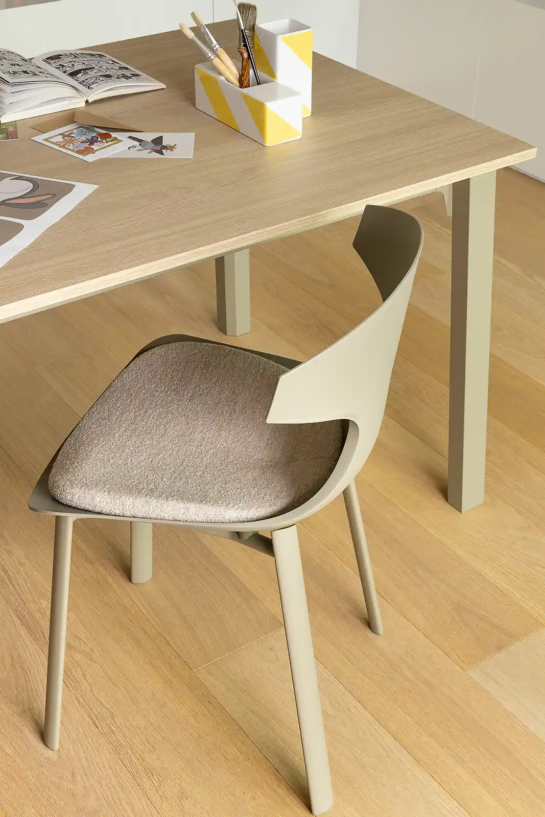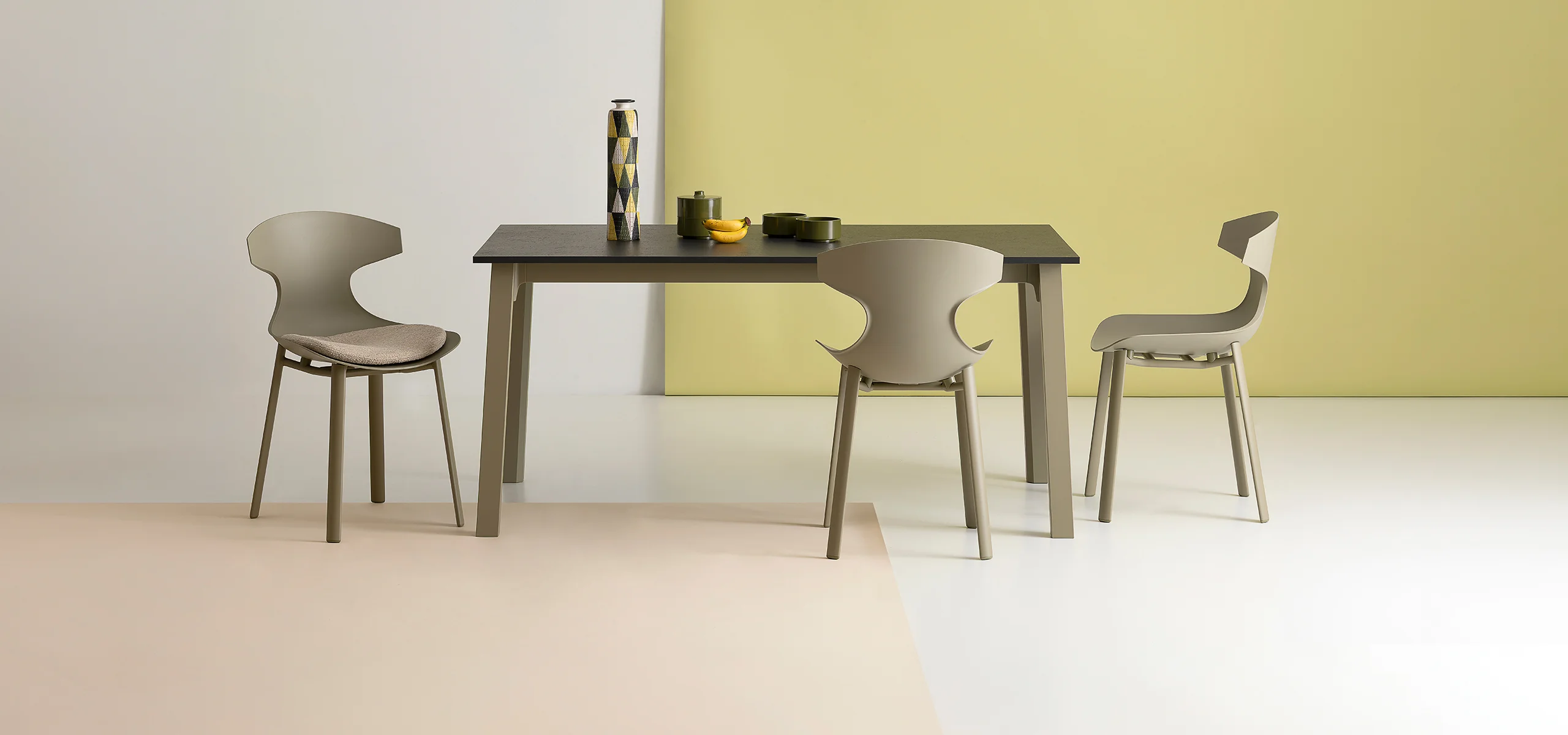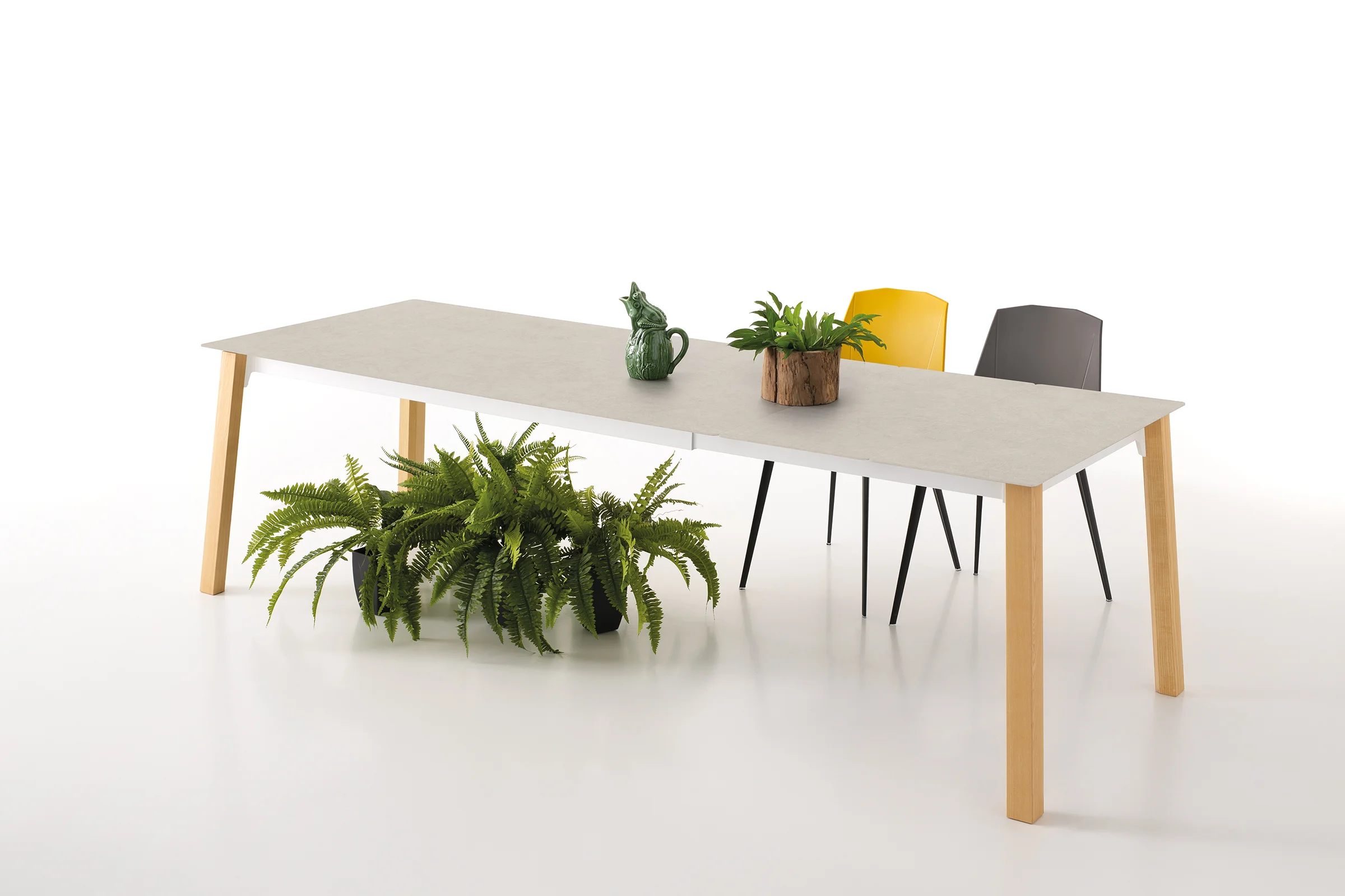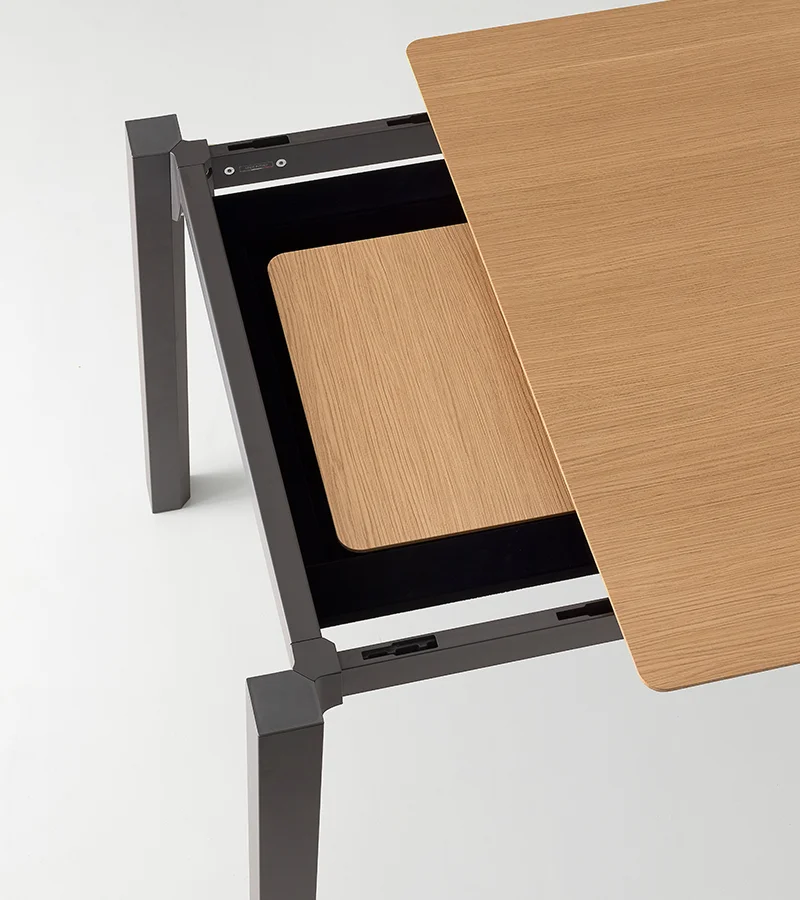 Quadro takes its name from its square-section legs, robust and bold in character, available in extruded aluminum or wood. The top, customizable in size and material, is paired with a solid metal frame. It is a design from the Concept collection.