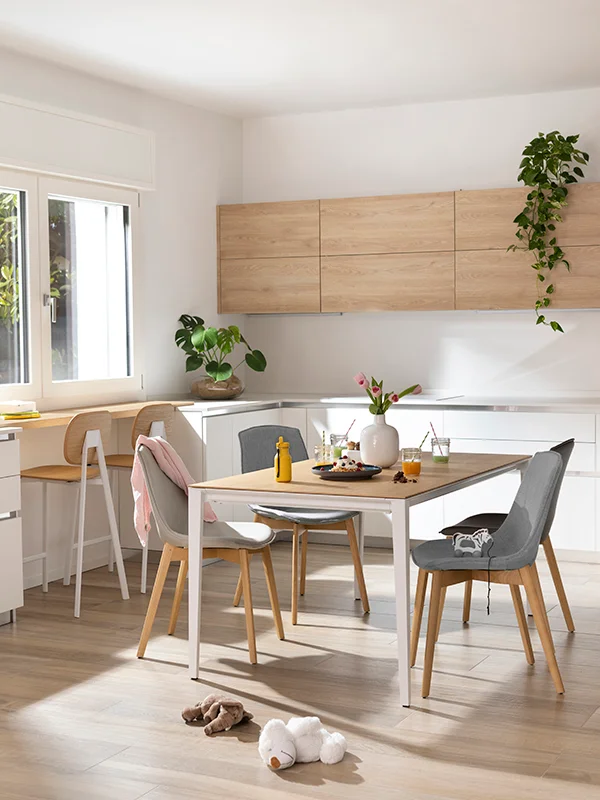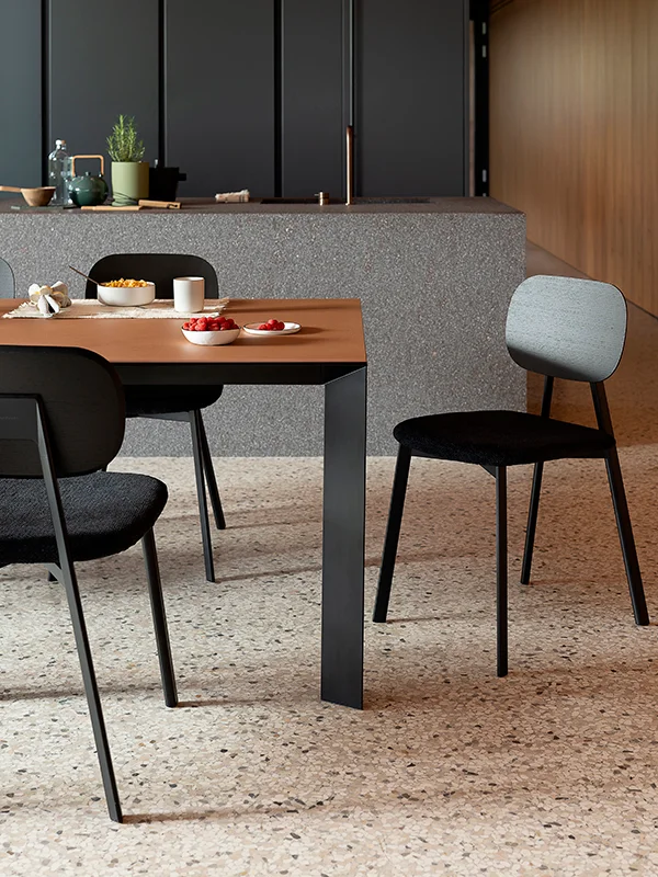 From polypropylene to oak, as well as upholstered versions: Tata is the modern seat for every setting.