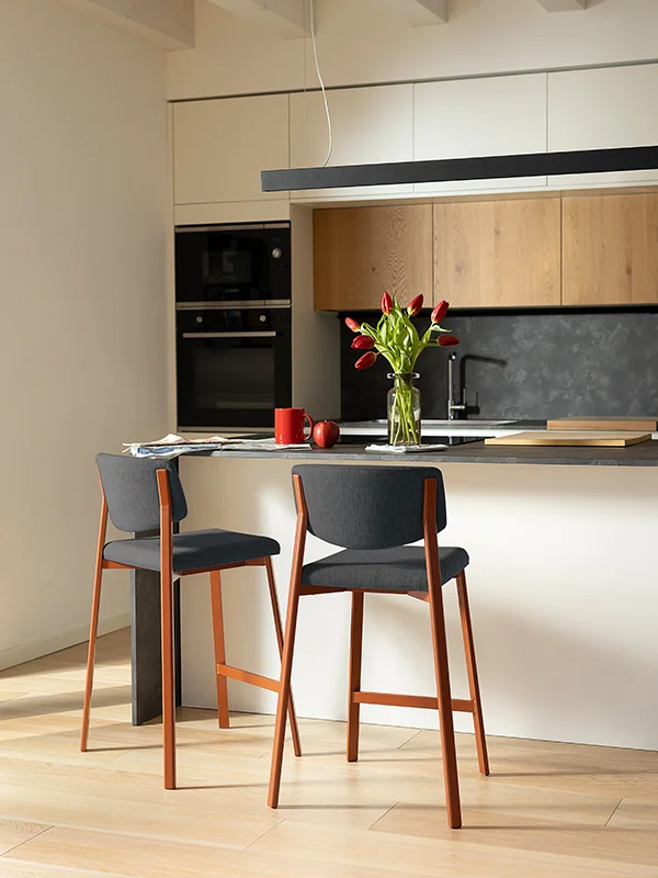 Pointhouse designer stools are designed to complete kitchens with an island or peninsula and to set up bar corners.
