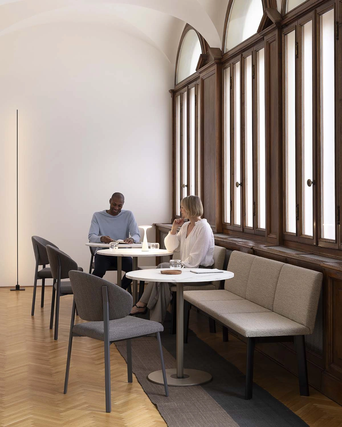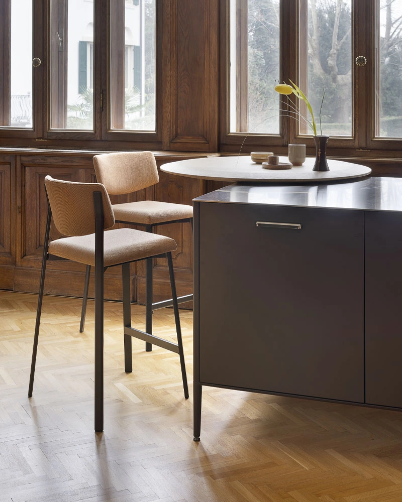 Every item of furnishing is designed for a different moment. Bar stools at the counter are for shorter stays - a quick espresso, a mid-day break or an evening drink.