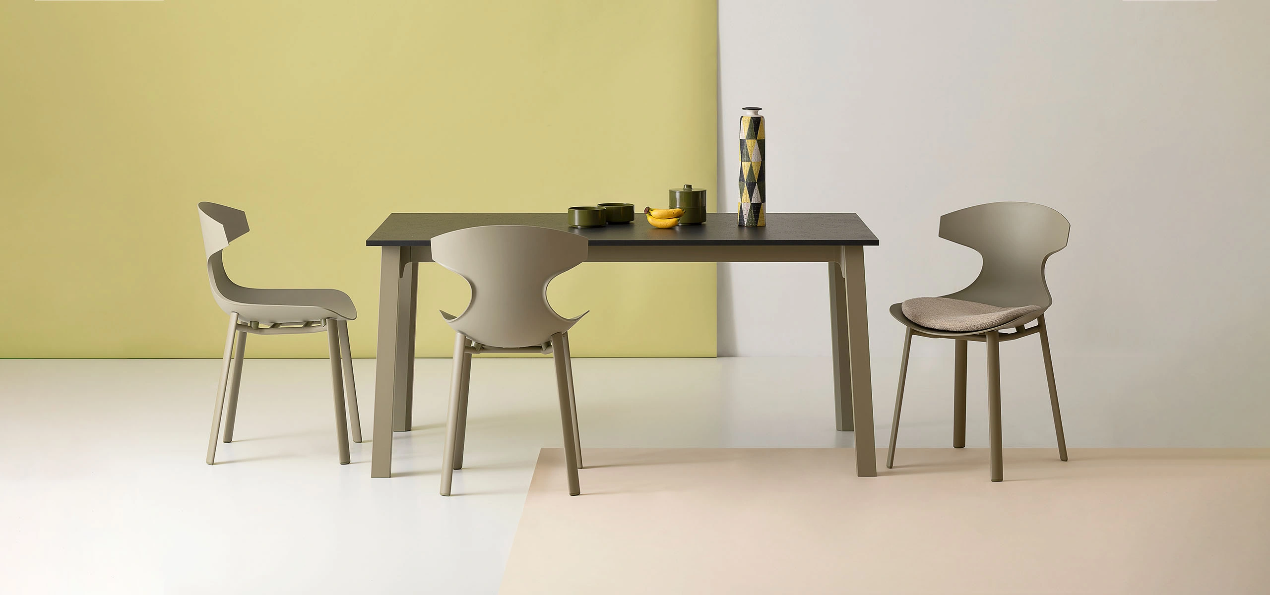 With a wide choice of finishes for the tops and sturdy metal or wooden frames, they allow for intelligent organization of space, combining ergonomics and contemporary silhouettes.