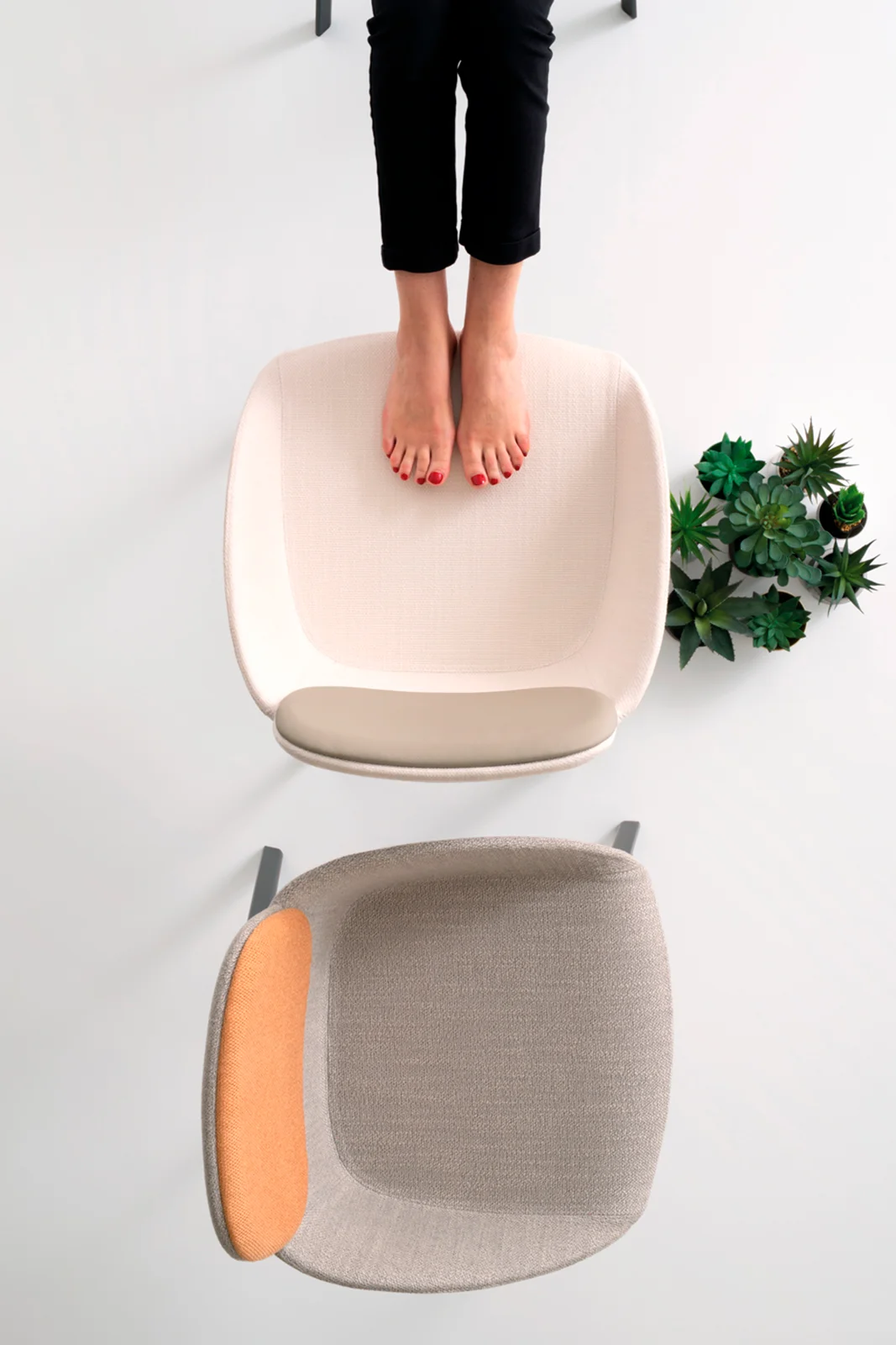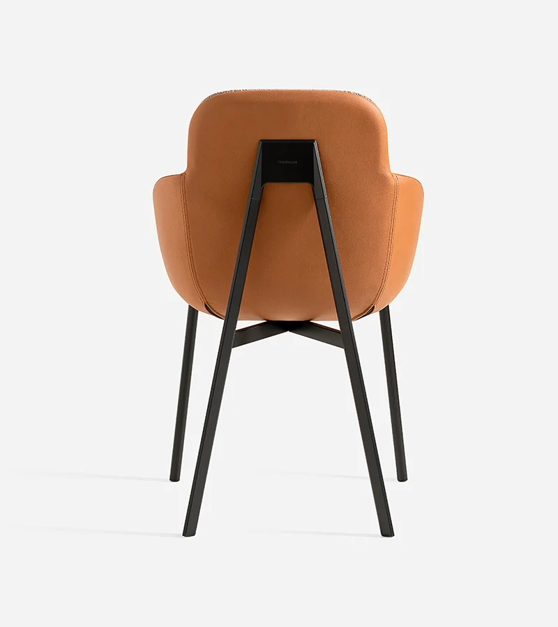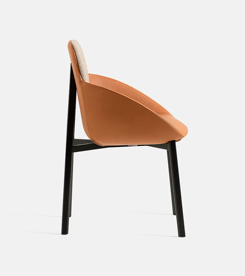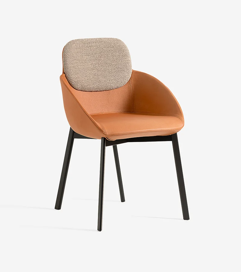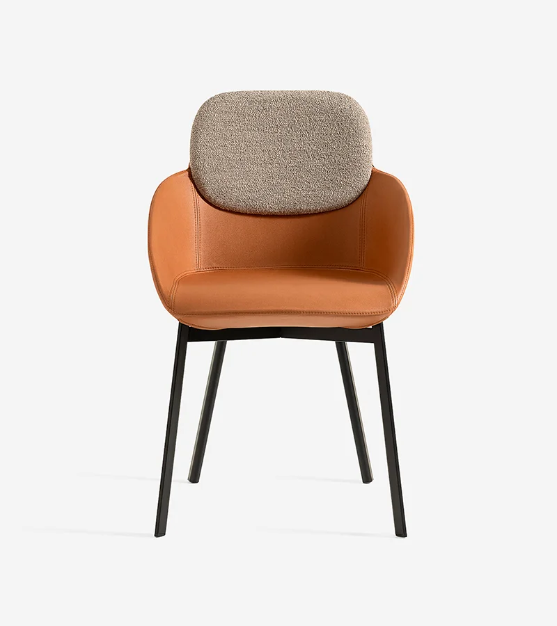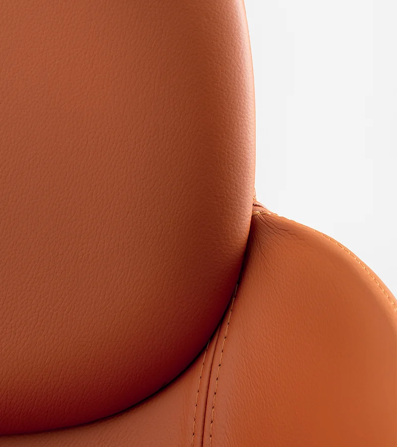 The Tata armchair expands the collection with a polyurethane seat upholstered in fabric or natural leather, designed for ultimate relaxation. The bespoke-section metal frame and the die-cast aluminum joint reflect the high technological value of the design. Versatile and flexible, it fits perfectly into waiting areas, executive offices or around a dining table. A blend of comfort and design that lives without compromise in both residential and professional spaces.
