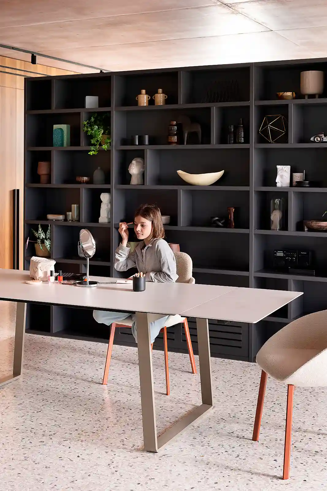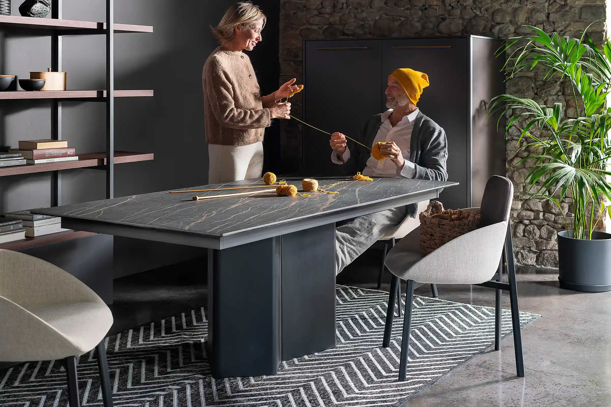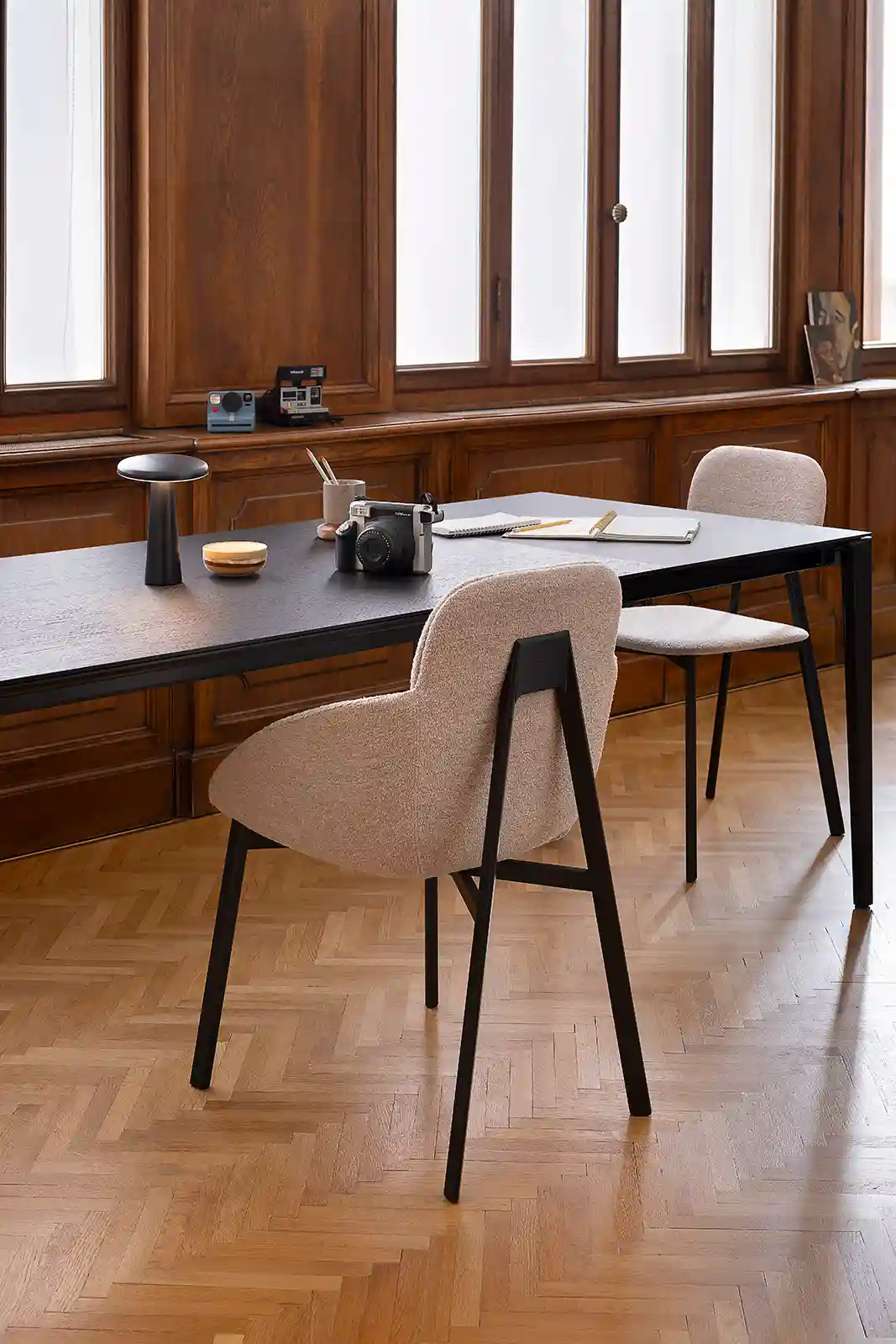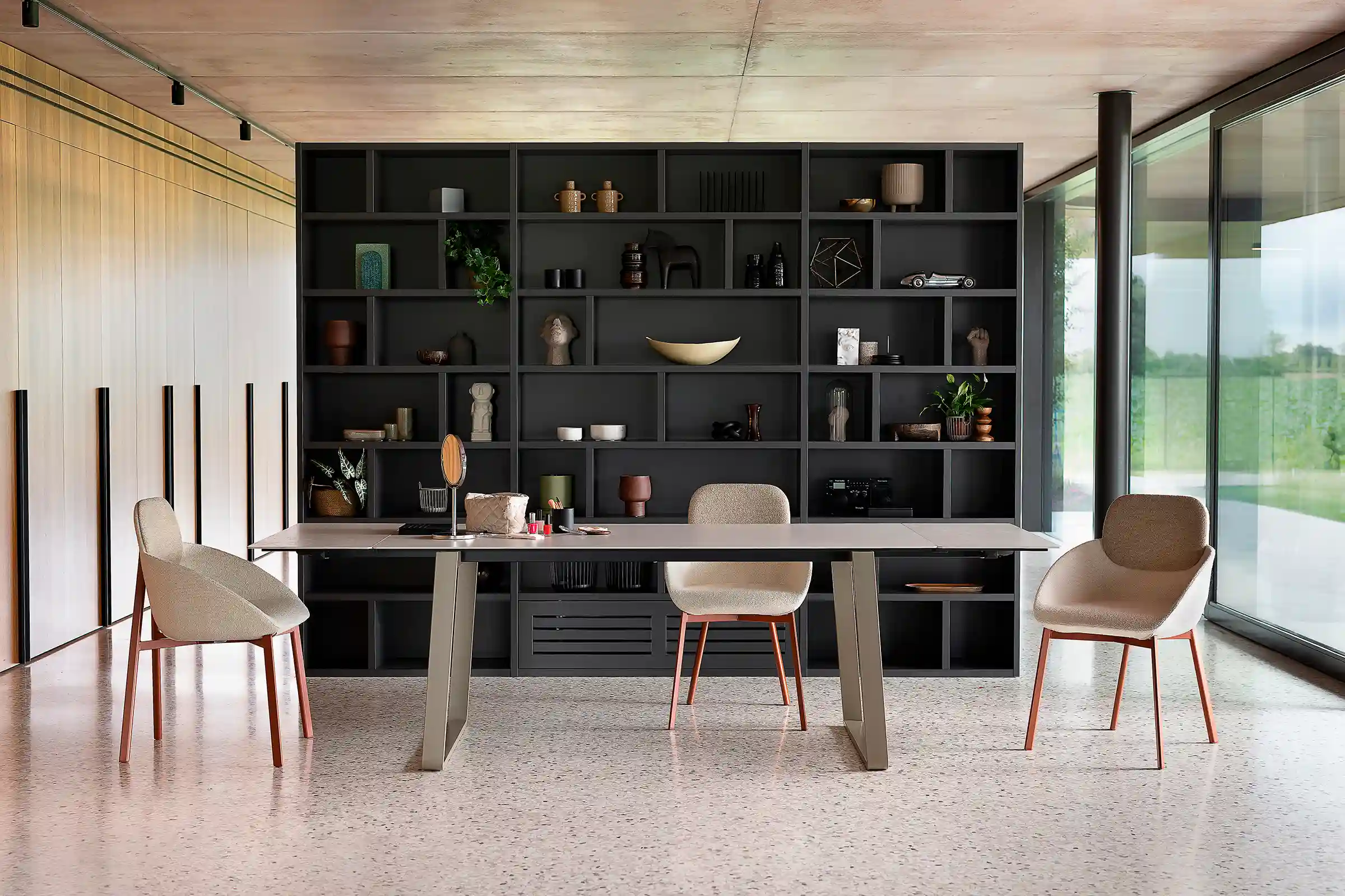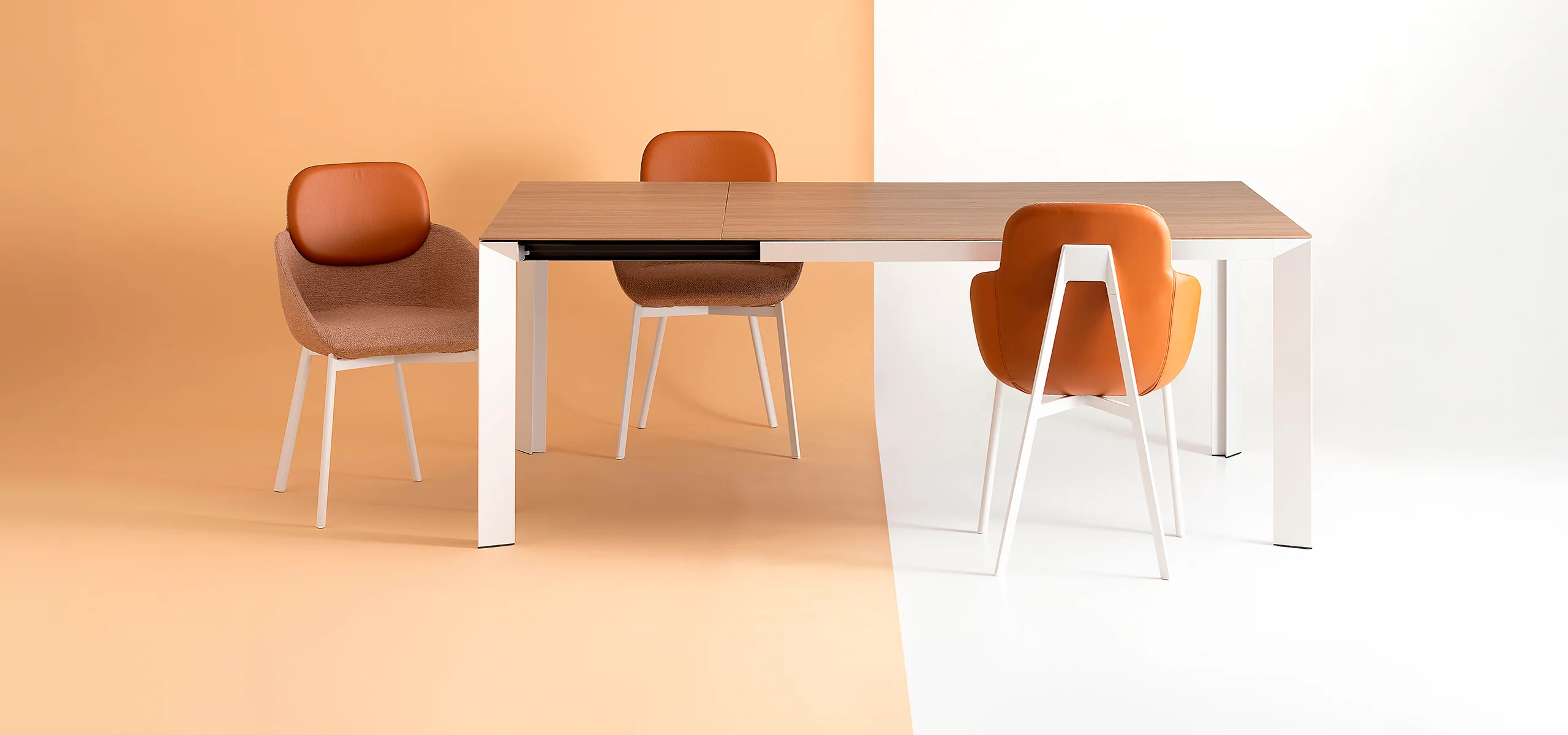 The Tata armchair expands the collection with a polyurethane seat upholstered in fabric or natural leather, designed for ultimate relaxation. The bespoke-section metal frame and the die-cast aluminum joint reflect the high technological value of the design. Versatile and flexible, it fits perfectly into waiting areas, executive offices or around a dining table. A blend of comfort and design that lives without compromise in both residential and professional spaces.