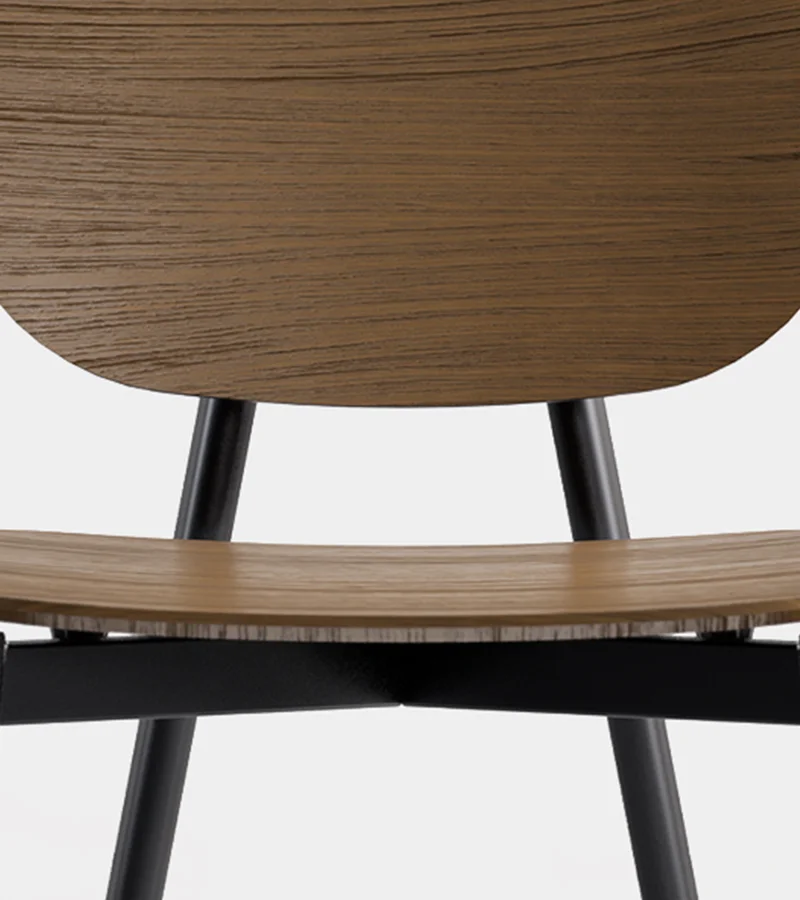 In this version, the Tata stool focuses on the nobility of wood to offer a sophisticated and natural aesthetic. The contrast between the round metal base section and the veneered surfaces creates an ideal visual balance for lounge areas, lobbies, or residential breakfast bars. The high-precision machining of the joint and the choice of materials guarantee long-lasting durability. A furnishing element that conveys quality and attention to detail while maintaining total flexibility.