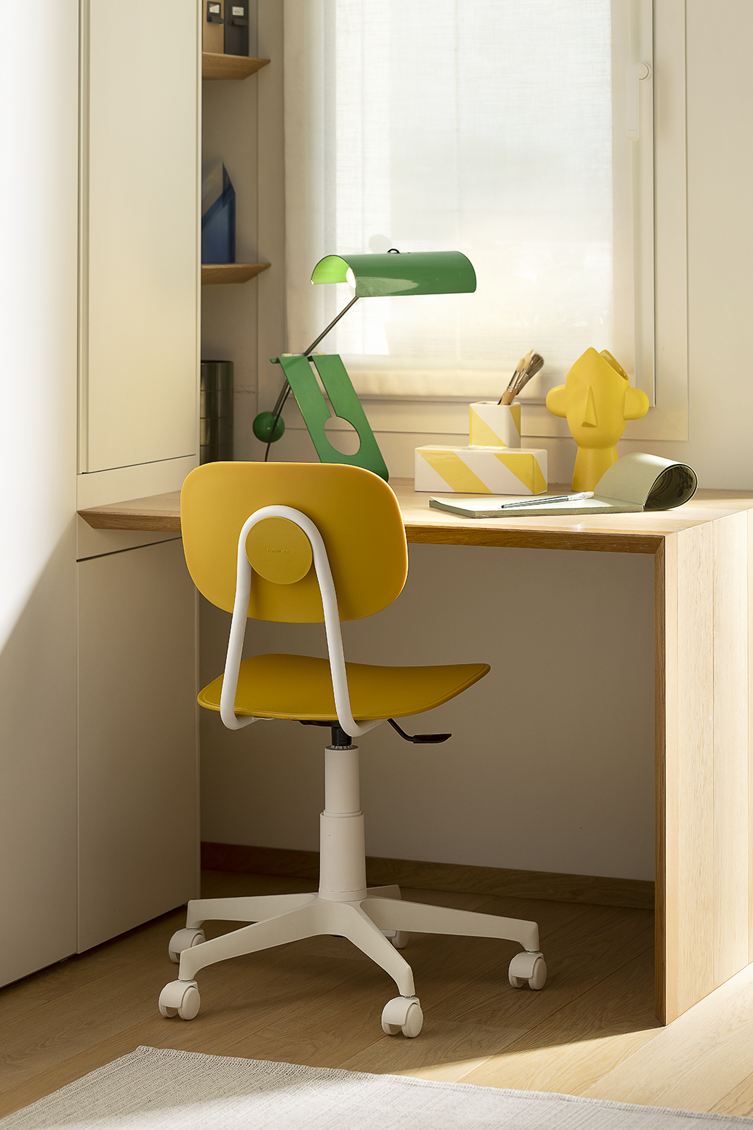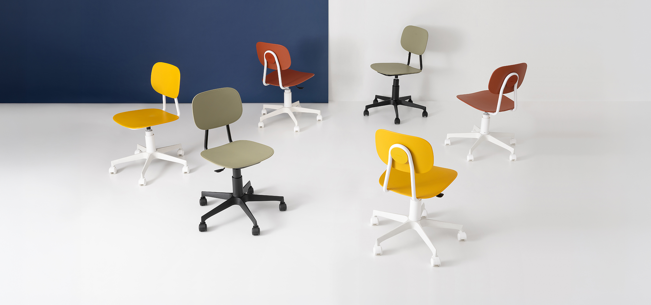 This evolution introduces a new dimension of dynamism, integrating functional wheels into the solid round tubular frame. The identity of the original design remains intact thanks to the technopolymer cover detail, but the added mobility facilitates its use in children’s bedrooms, study areas, and operational offices. The polypropylene shell guarantees strength, while the powder-coated base ensures durability. A technical furnishing element that responds promptly to modern requirements.