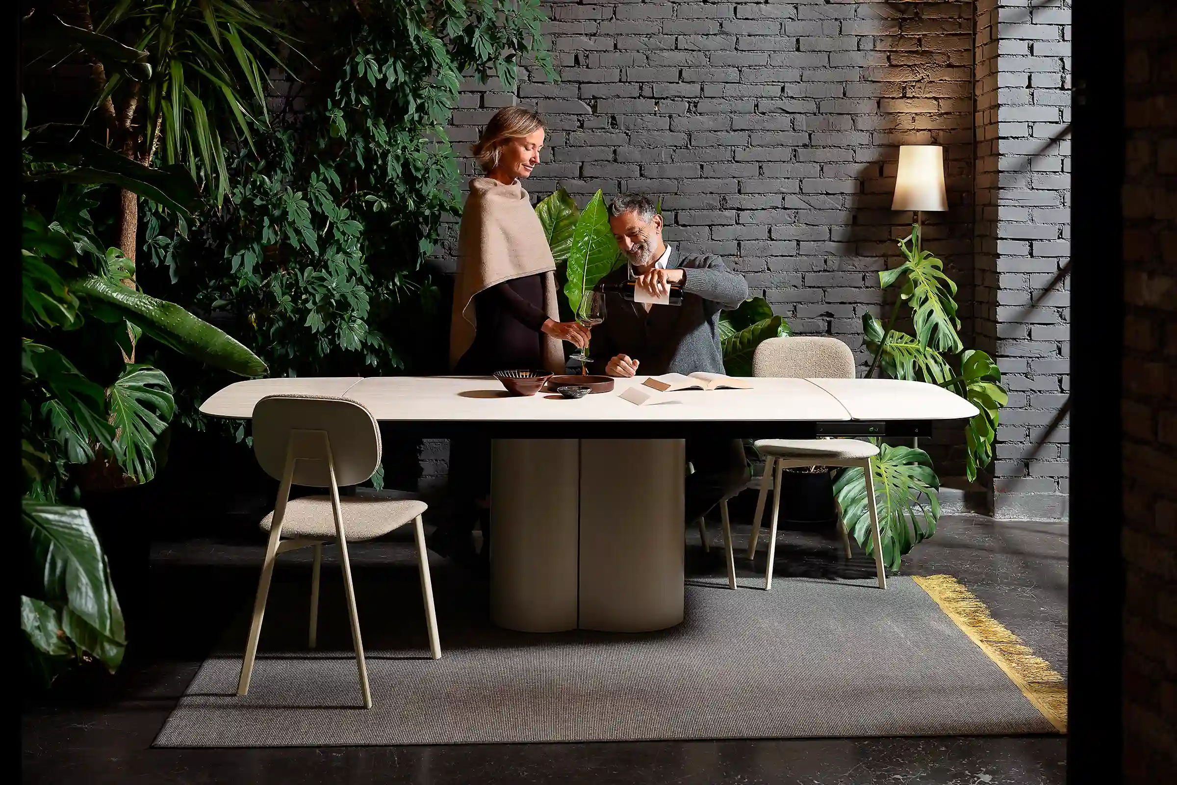 This version of Tata elevates the concept of comfort through a soft upholstery that enhances its dynamic silhouettes. The metal frame, made using advanced technological processes, supports a seat designed for prolonged well-being in any home or contract setting. The die-cast aluminum joint with concealed mechanism guarantees aesthetic cleanliness and sturdiness. A versatile chair, capable of furnishing with style and comfort.