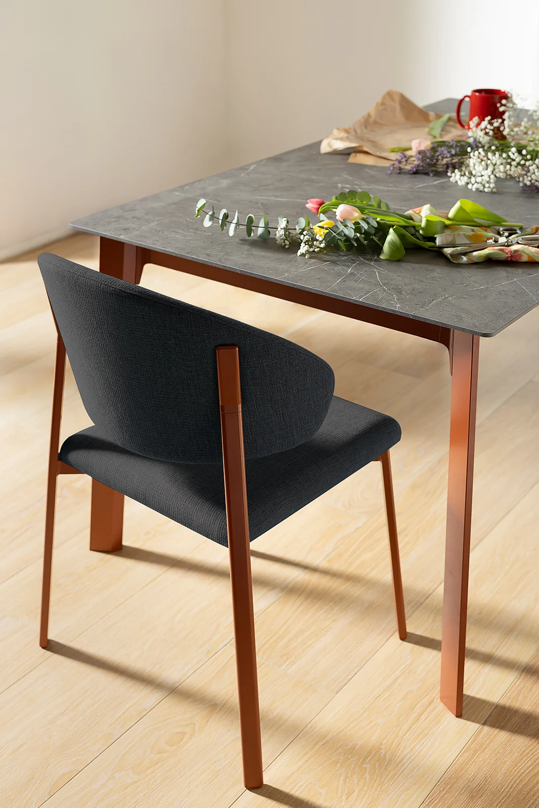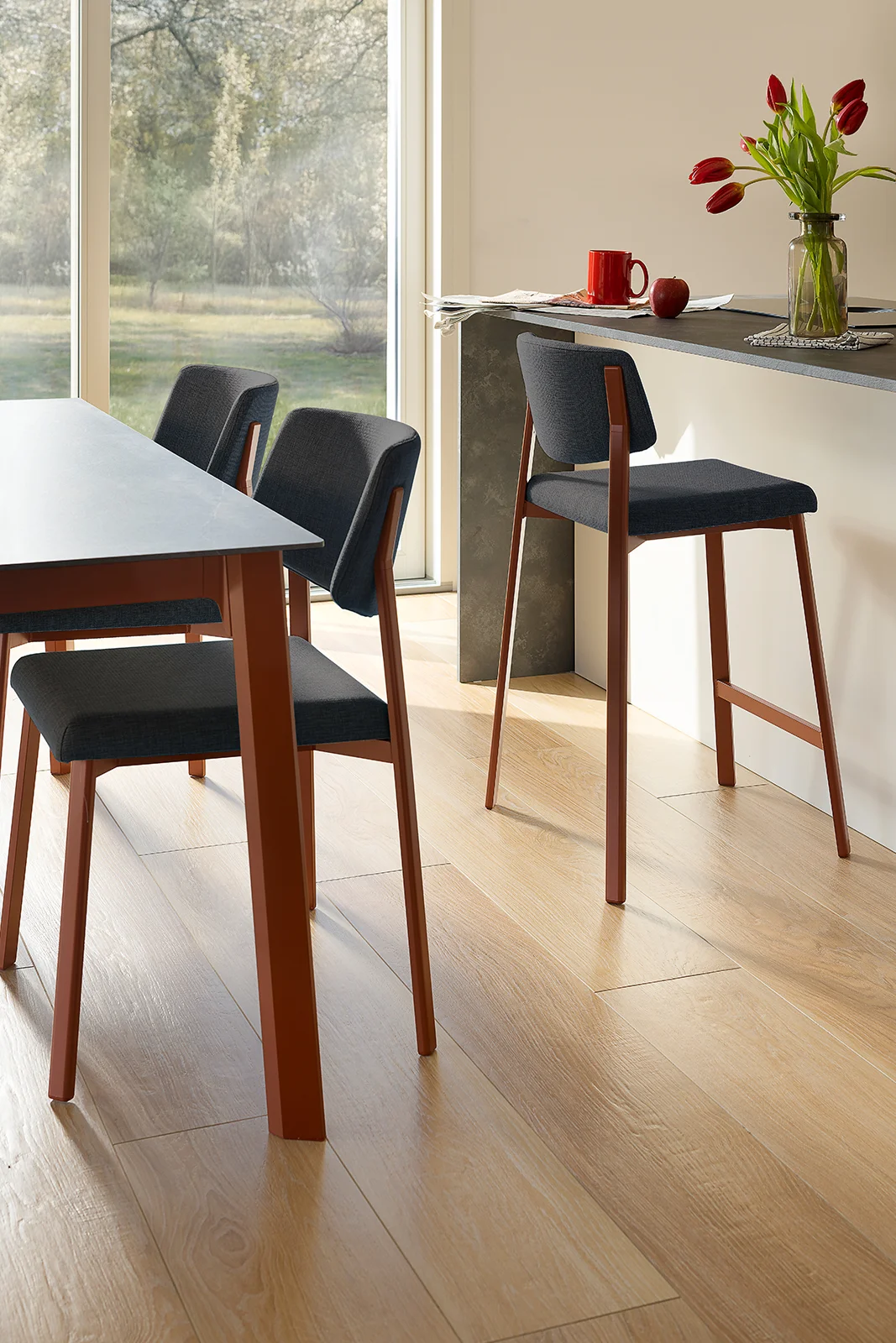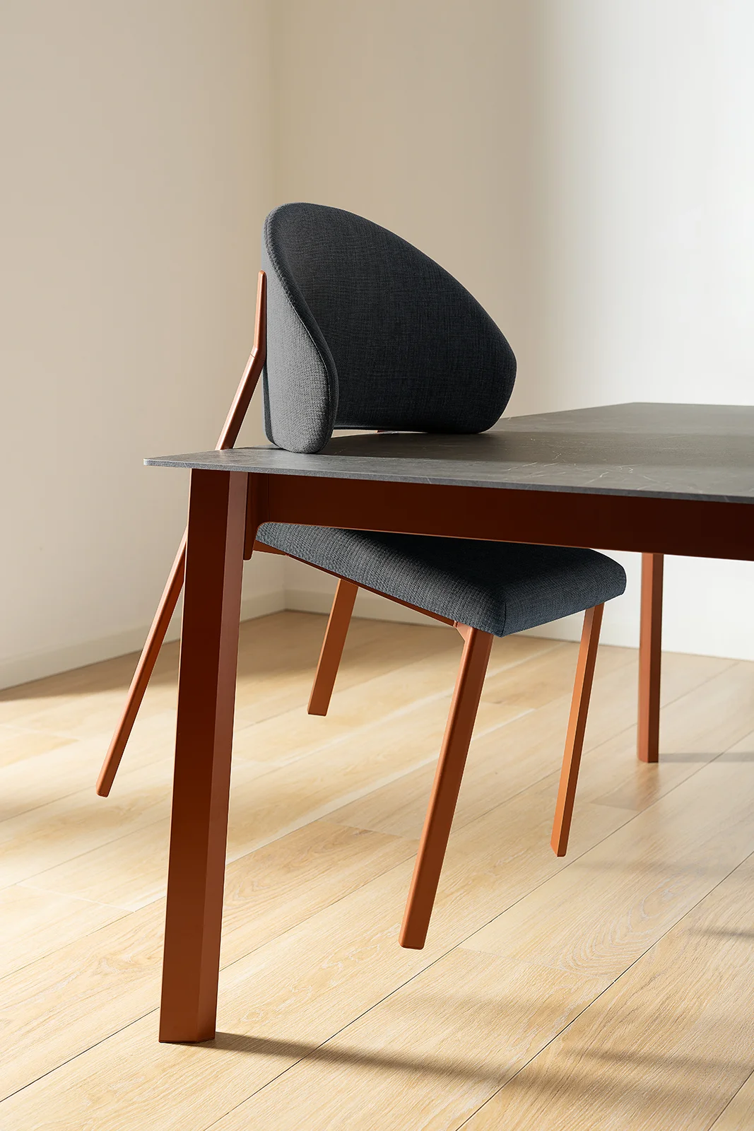 La mesa Drop se distingue por sus patas de aluminio extruido de sección poligonal en forma de gota. Disponible en versión fija o extensible, puede personalizarse con tableros de varios materiales y acabados. Es un diseño de la colección Concept.