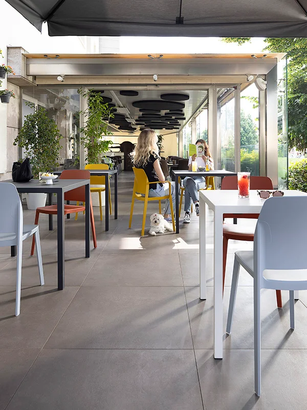 Tipa est la famille d'assises en technopolymère coloré qui passe sans effort du salon au jardin.