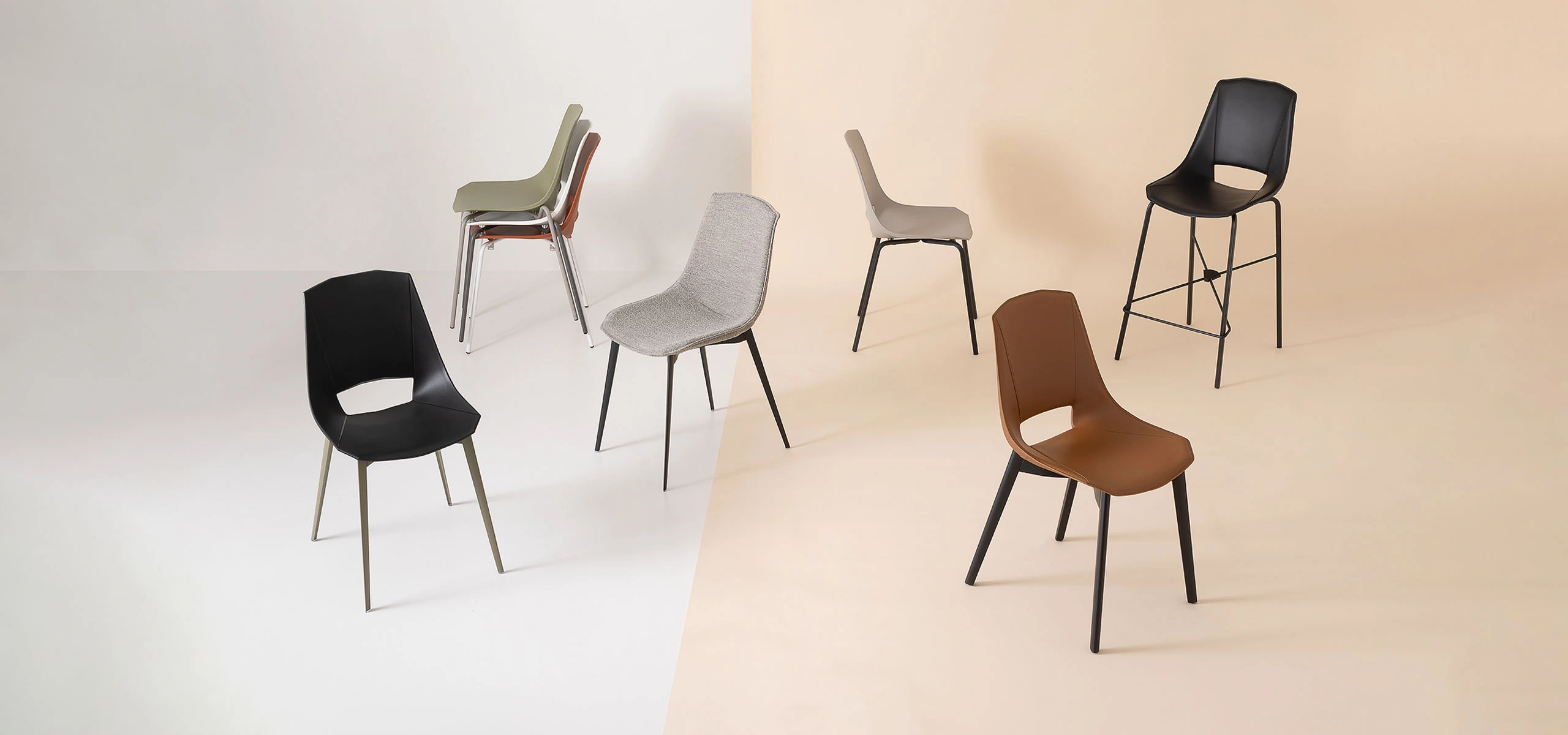 Fabriquées en Italie à partir de matériaux sélectionnés tels que le métal, le tissu et le polypropylène, ces chaises allient lignes contemporaines, robustesse et ergonomie pour répondre à différents besoins d'ameublement.
