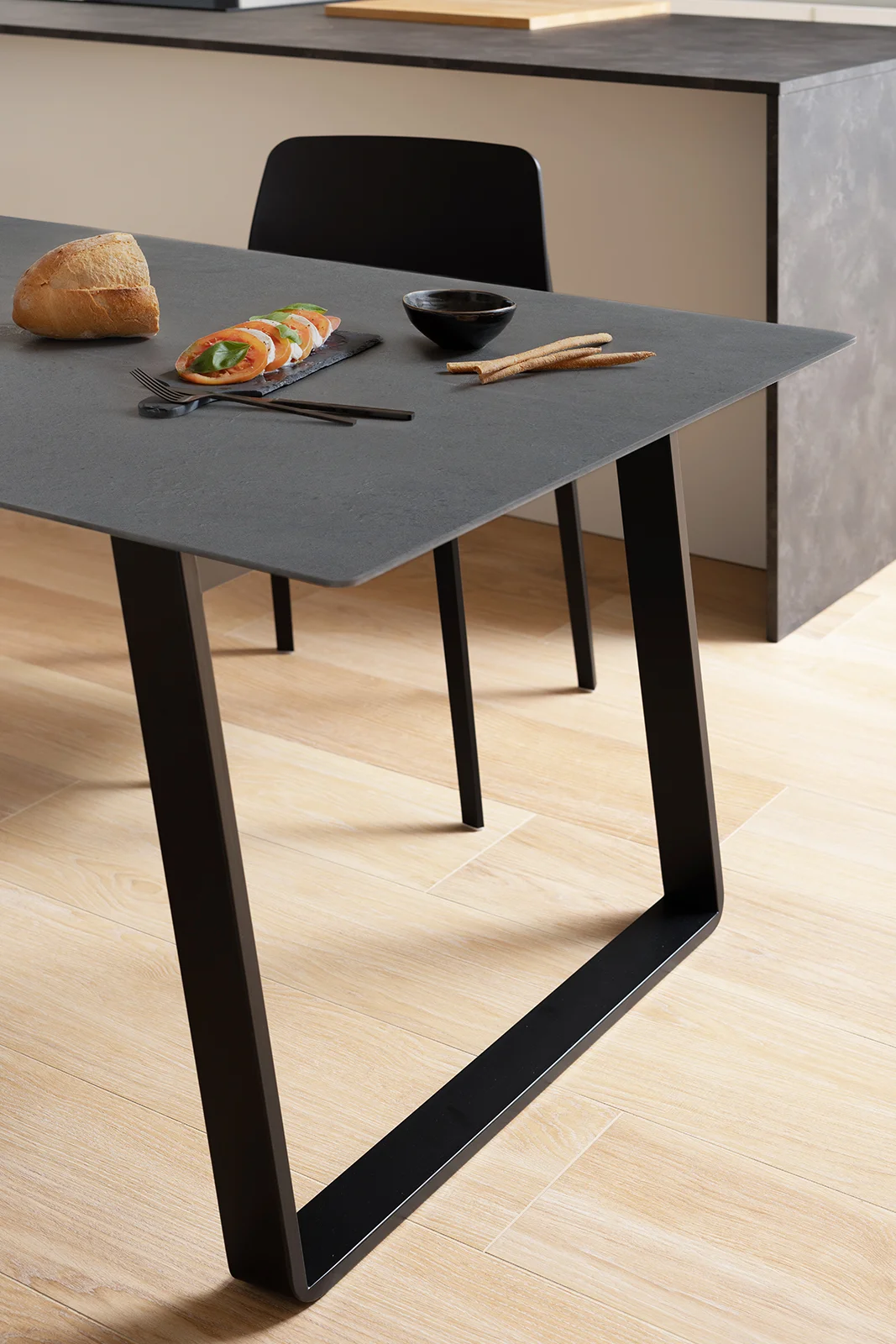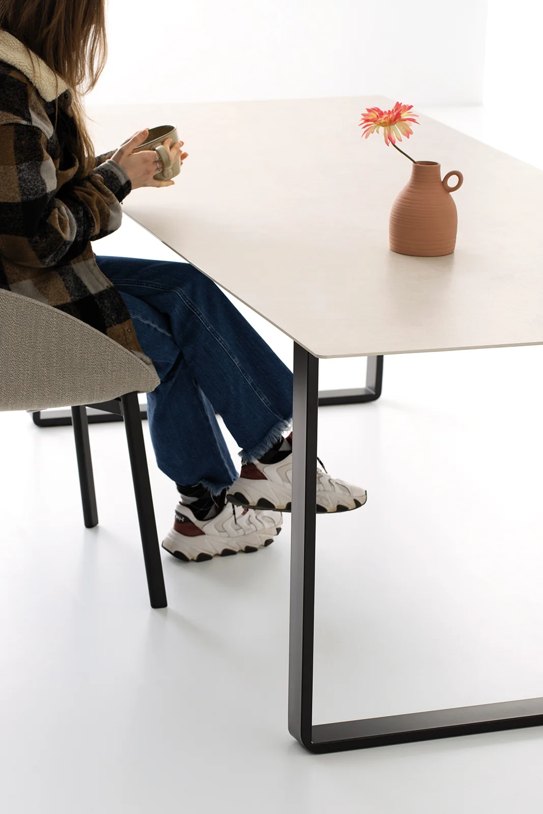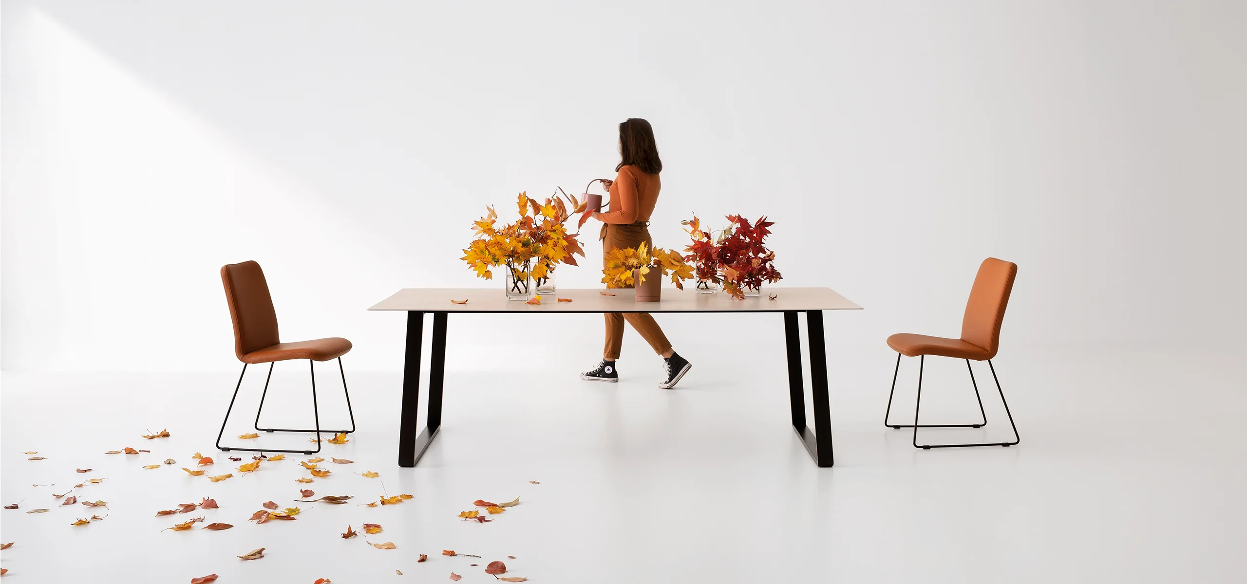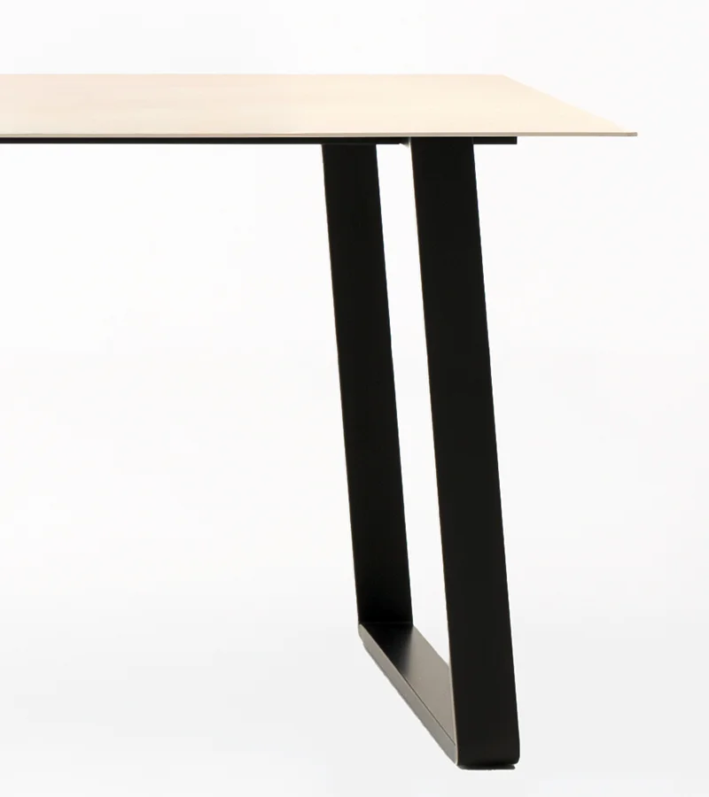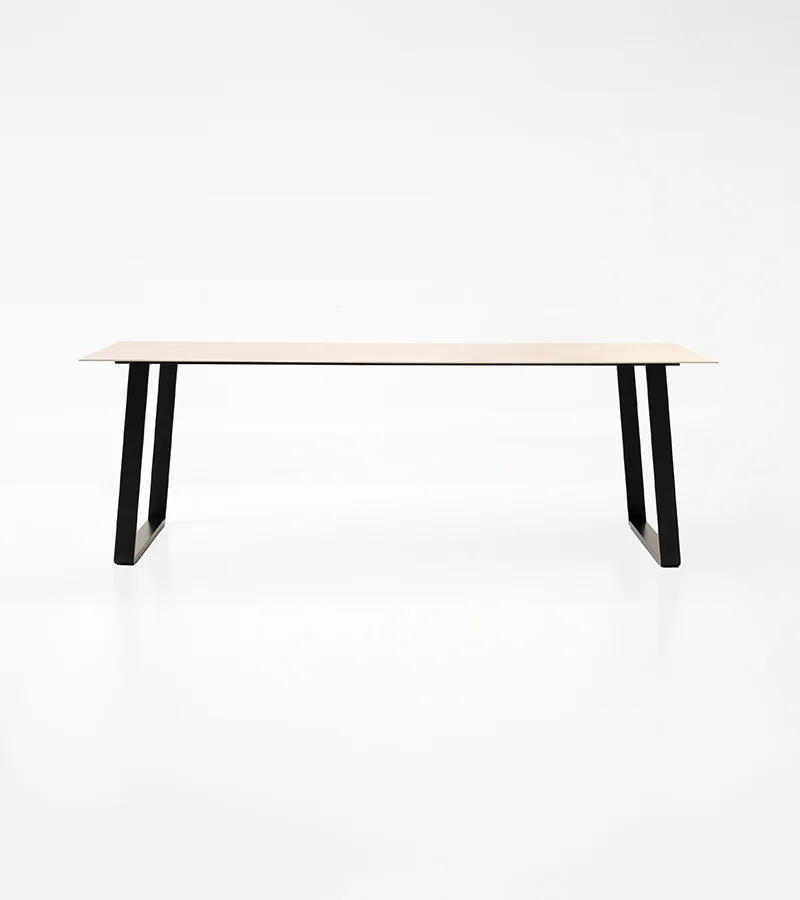 Otto est une table qui s'adapte aux usages et aux besoins de la maison. Conçue comme table fixe, elle peut devenir extensible grâce à un pratique kit de rallonge optionnel. Les pieds en forme de pont, associés à une structure en acier, soutiennent un plateau au profil léger et minimaliste, alliant solidité et design raffiné.
