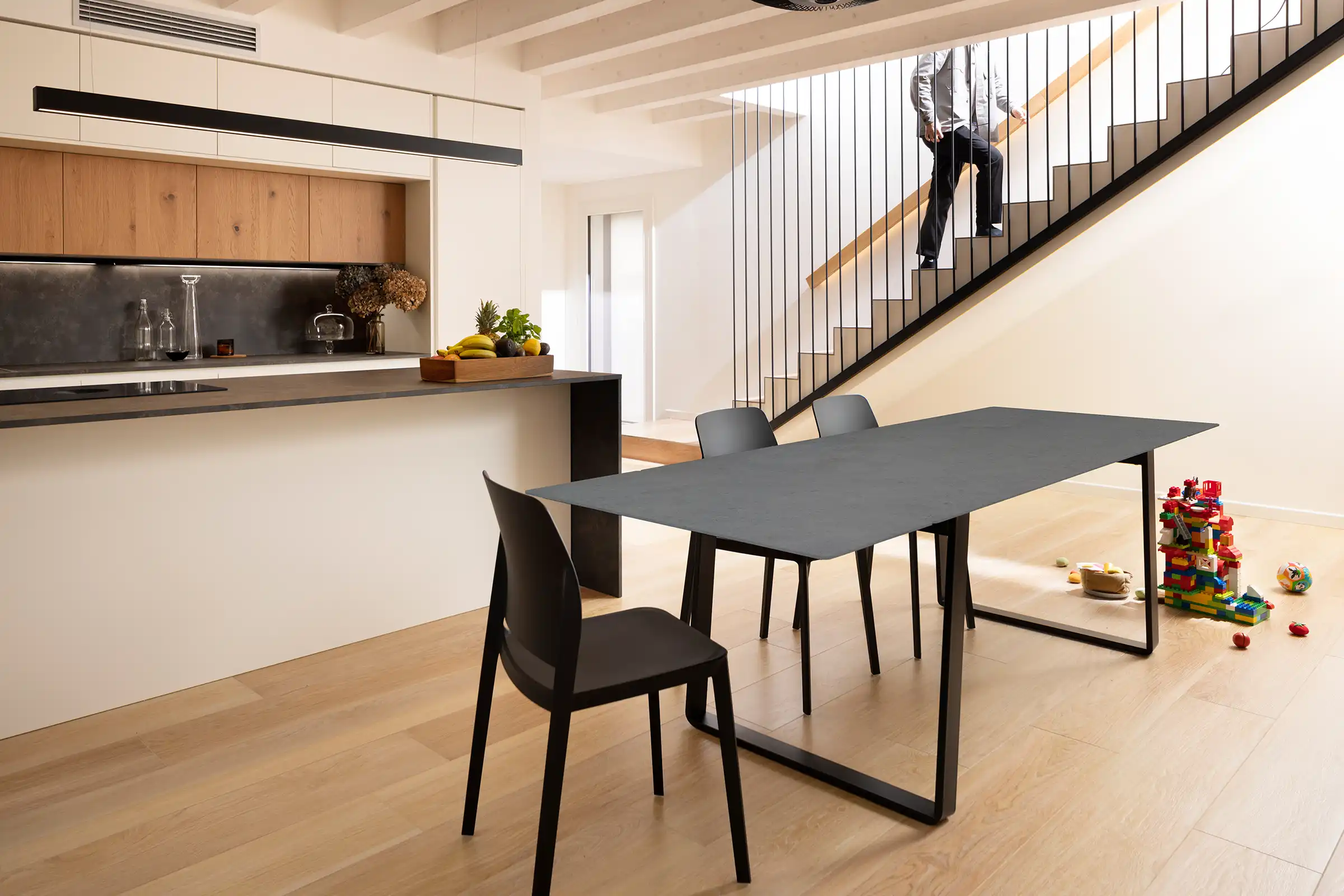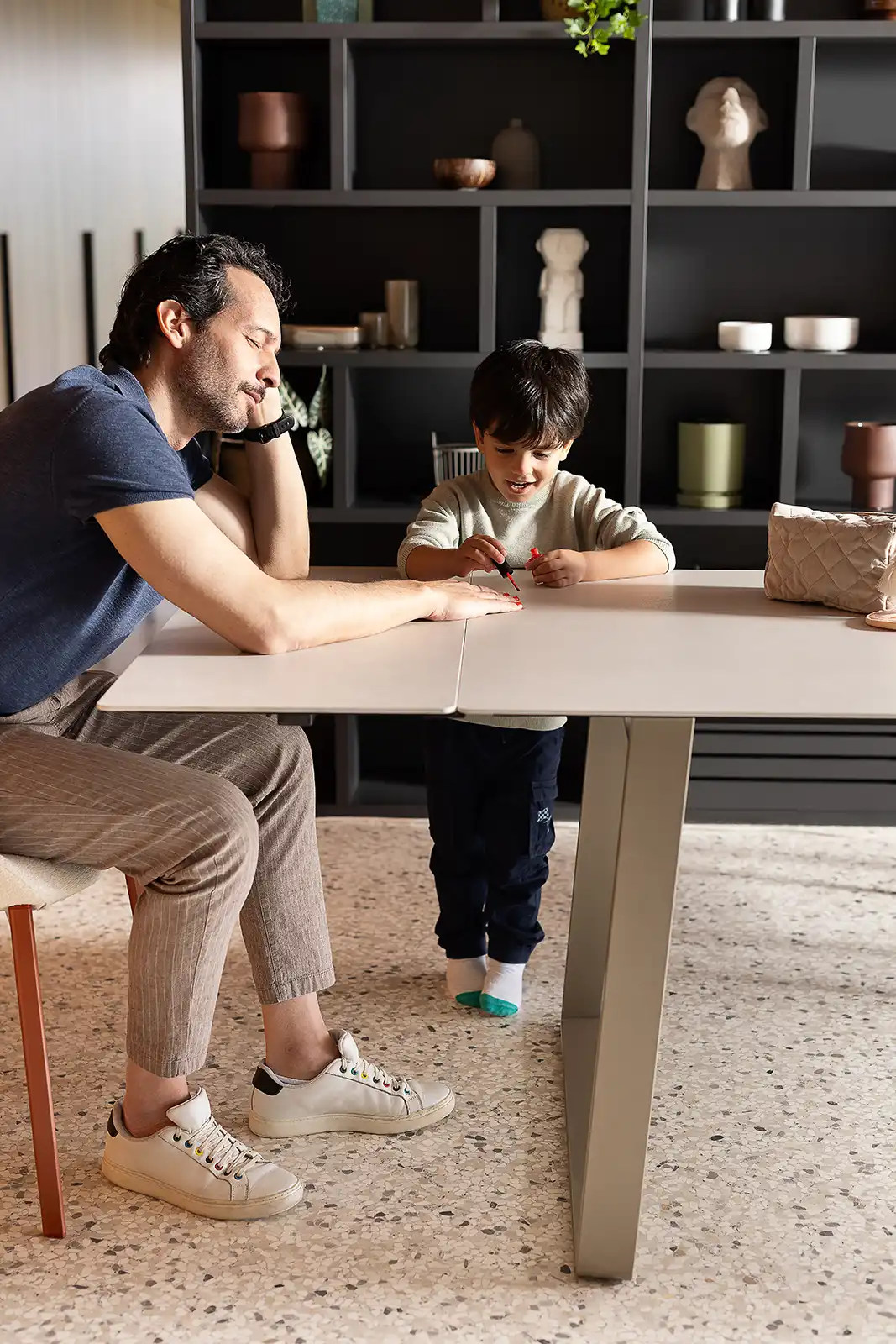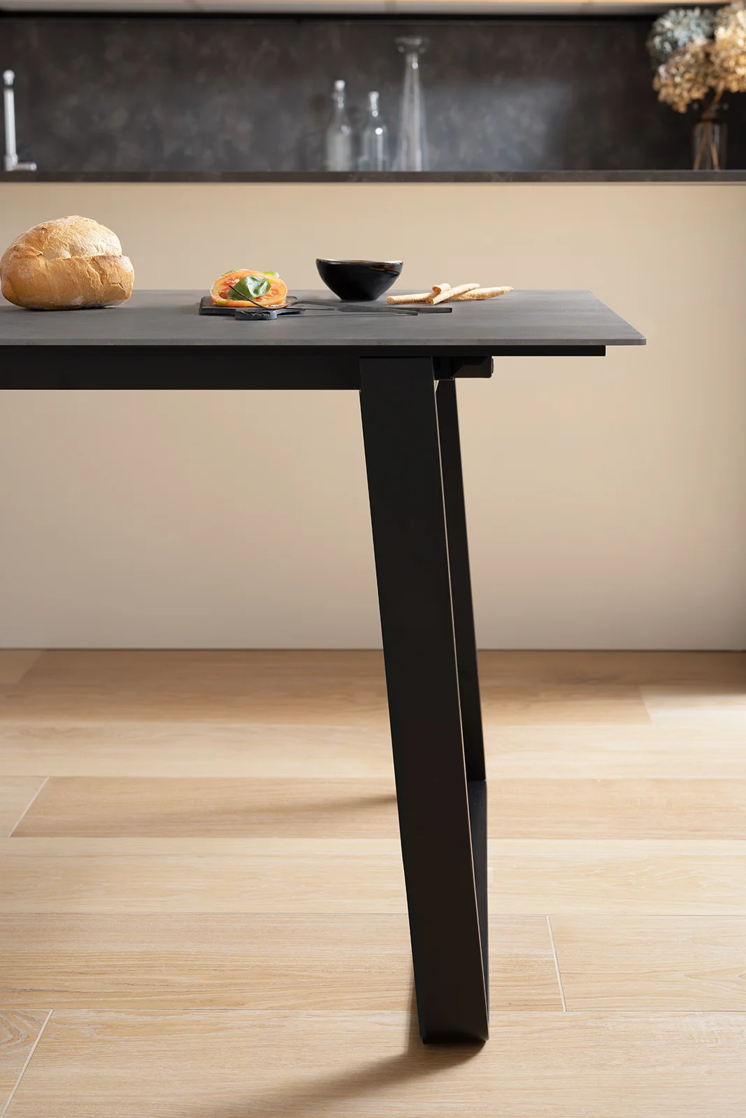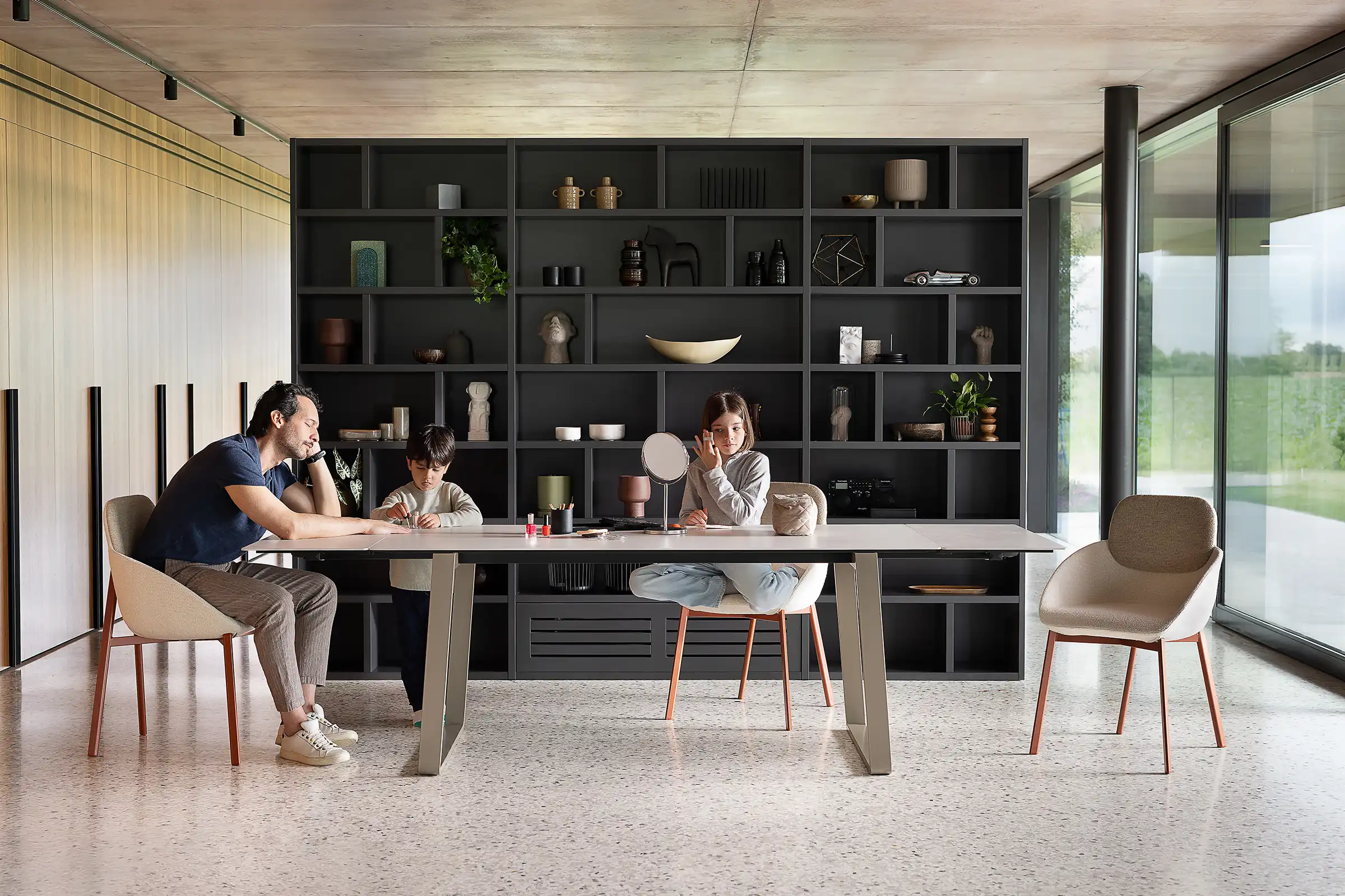 Otto est une table qui s'adapte aux usages et aux besoins de la maison. Conçue comme table fixe, elle peut devenir extensible grâce à un pratique kit de rallonge optionnel. Les pieds en forme de pont, associés à une structure en acier, soutiennent un plateau au profil léger et minimaliste, alliant solidité et design raffiné.