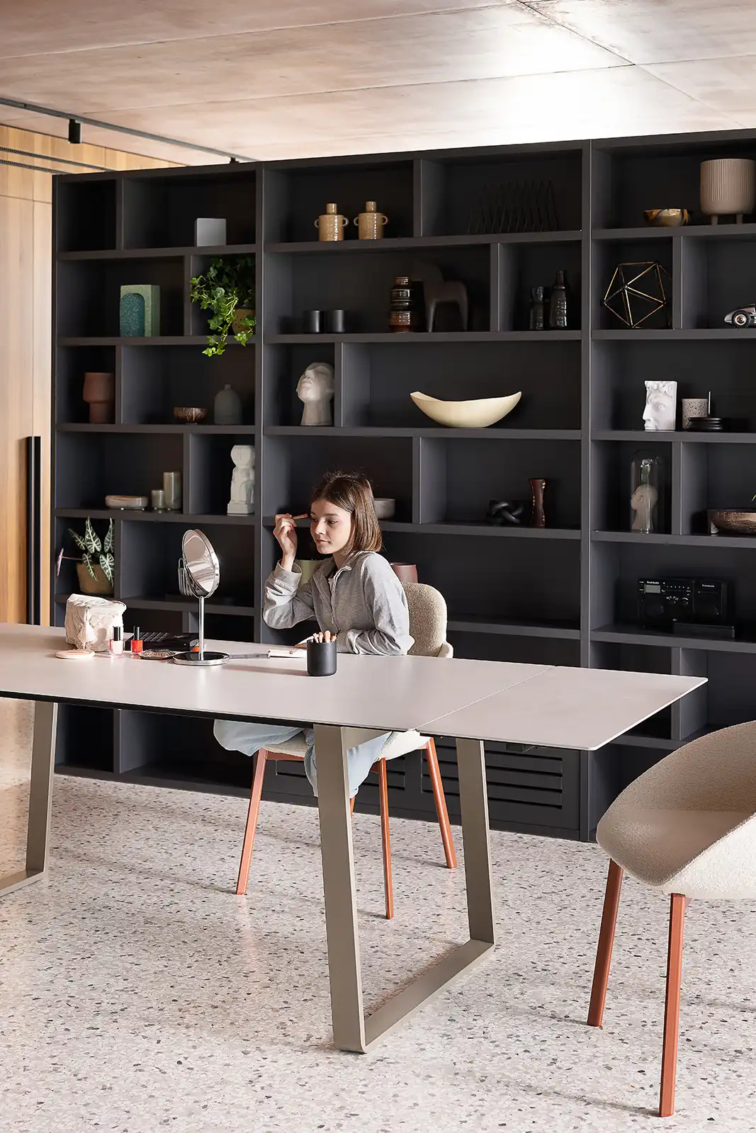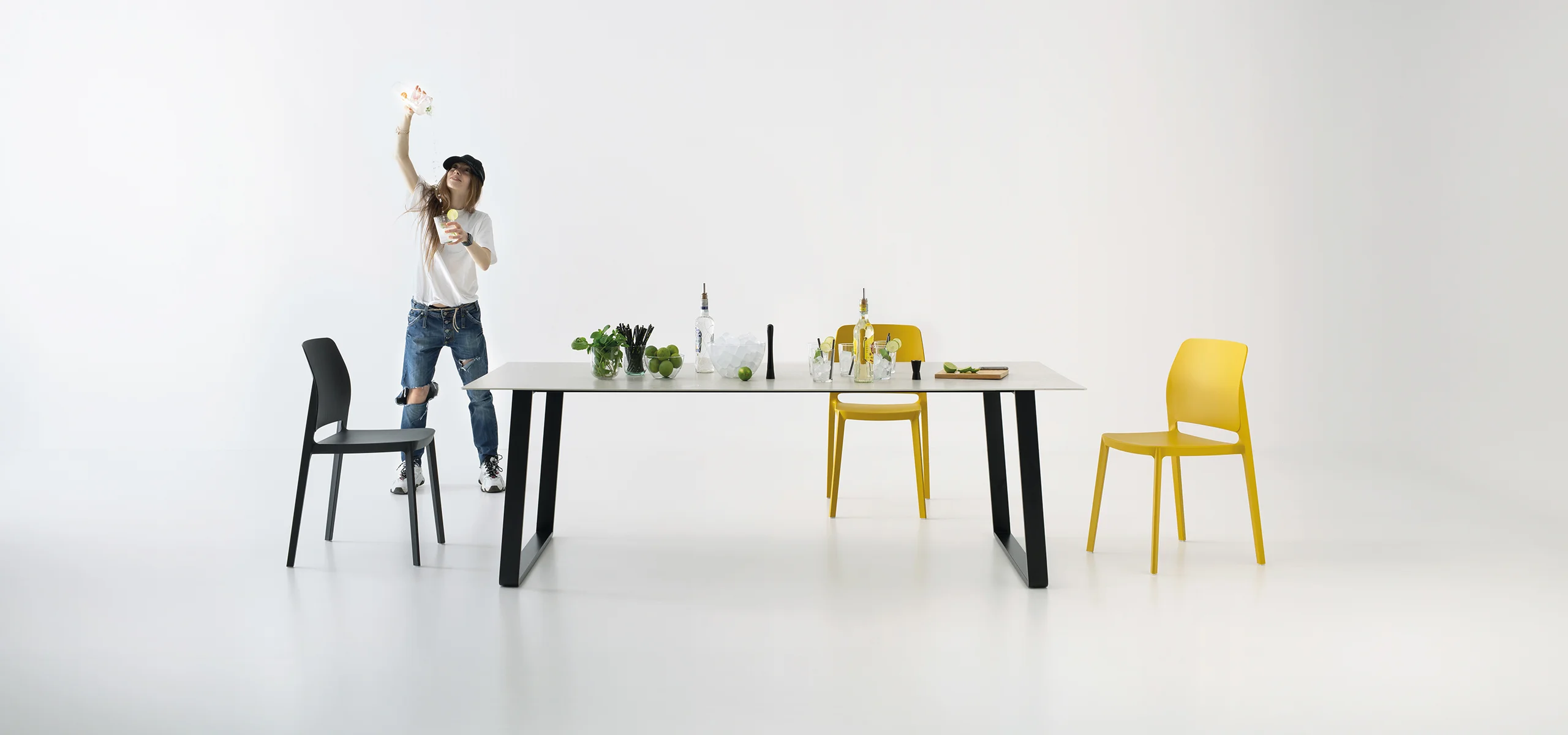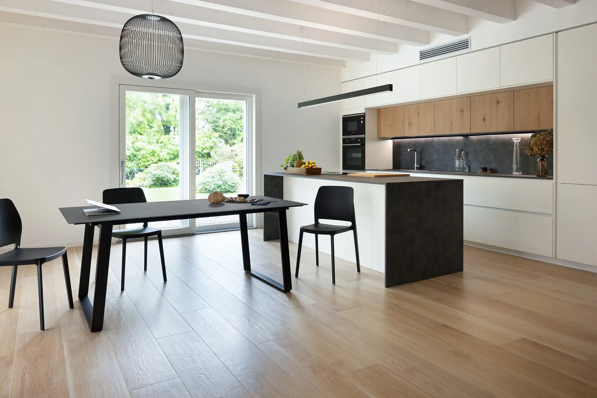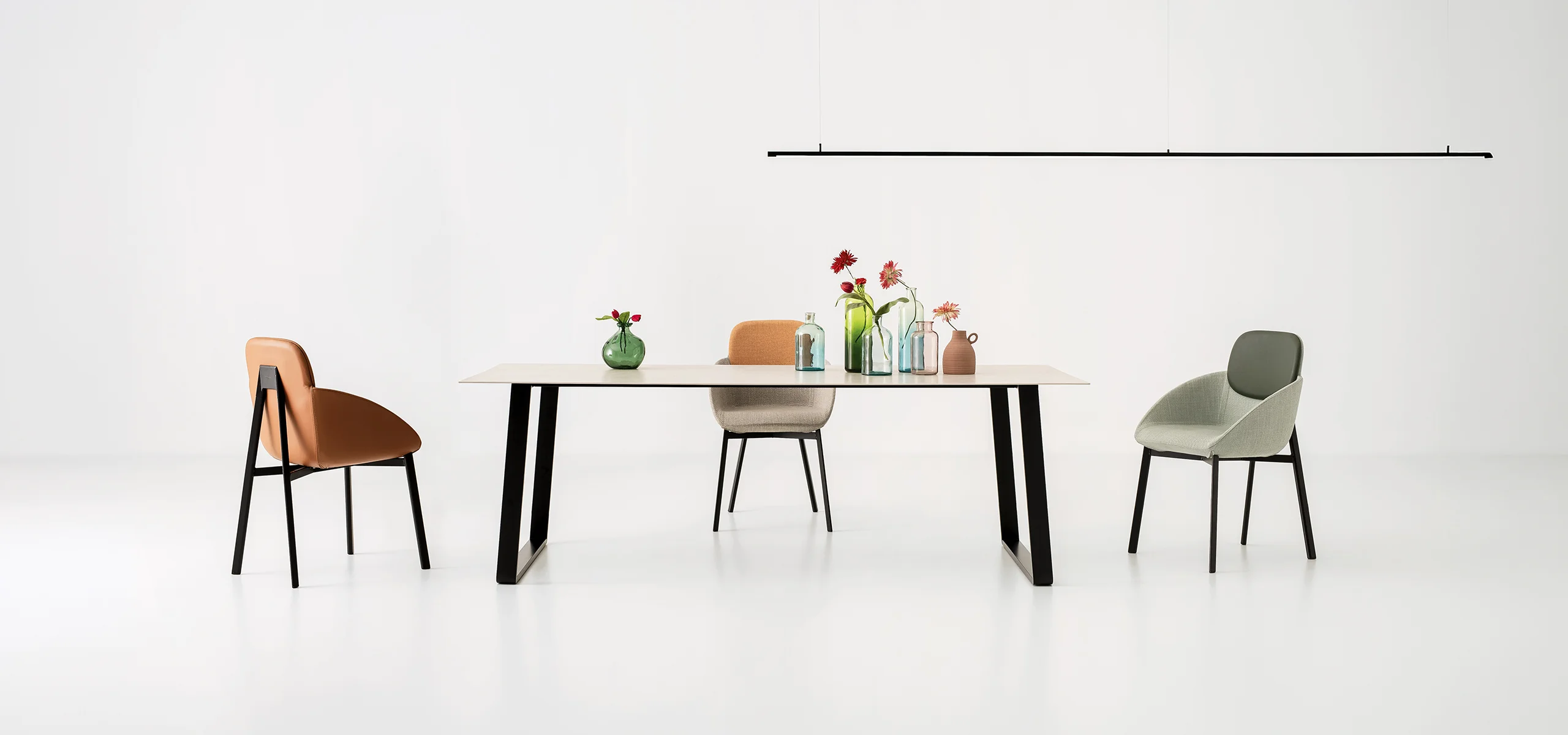 Otto est une table qui s'adapte aux usages et aux besoins de la maison. Conçue comme table fixe, elle peut devenir extensible grâce à un pratique kit de rallonge optionnel. Les pieds en forme de pont, associés à une structure en acier, soutiennent un plateau au profil léger et minimaliste, alliant solidité et design raffiné.