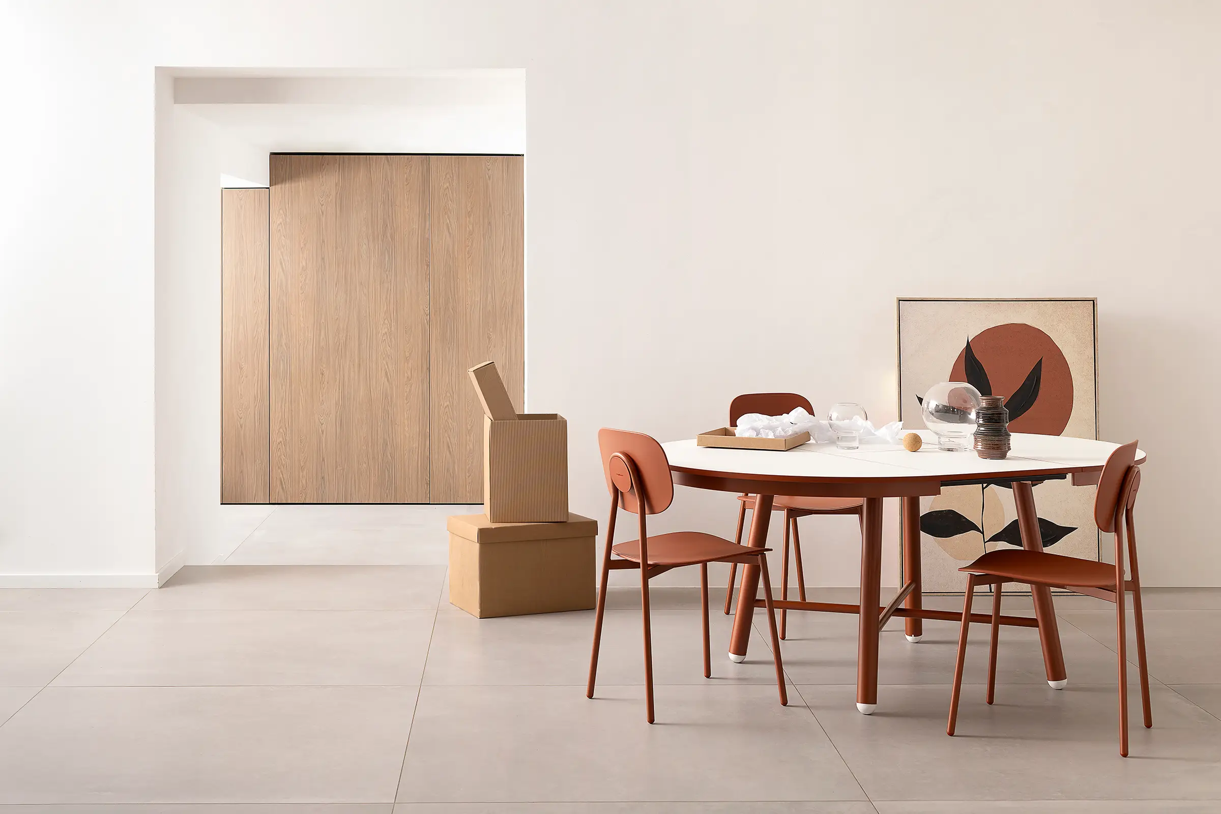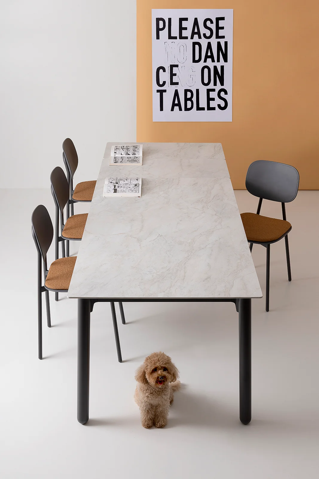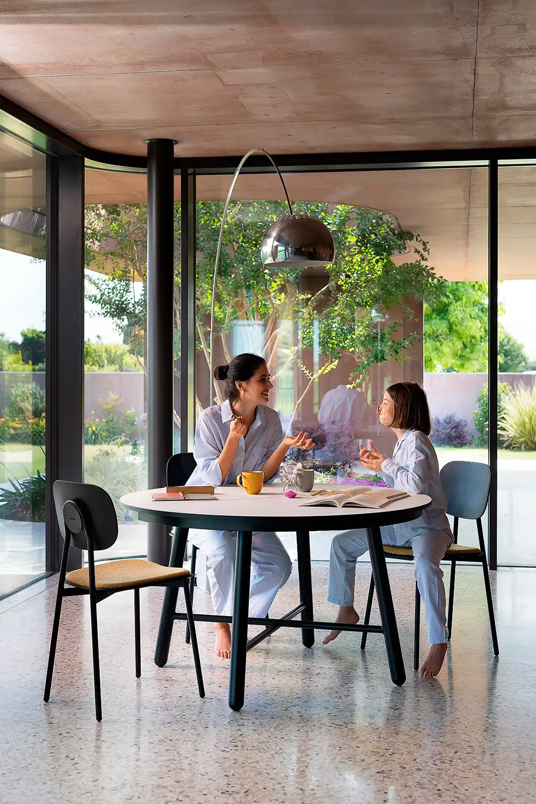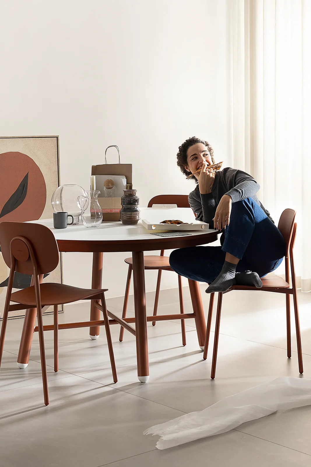 Réinterprétation dynamique de l'iconique Tata, cette chaise présente une structure en tube à section ronde peinte par poudrage époxy. Le détail distinctif réside dans le cache de fixation du dossier en technopolymère, parfaitement coordonné aux patins. L'assise et le dossier en polypropylène renforcé de fibres de verre garantissent légèreté et solidité. Grâce à son design original et à la variété de ses coloris, elle apporte une touche d'ironie aux espaces domestiques comme aux lieux publics tels que bars et pubs.