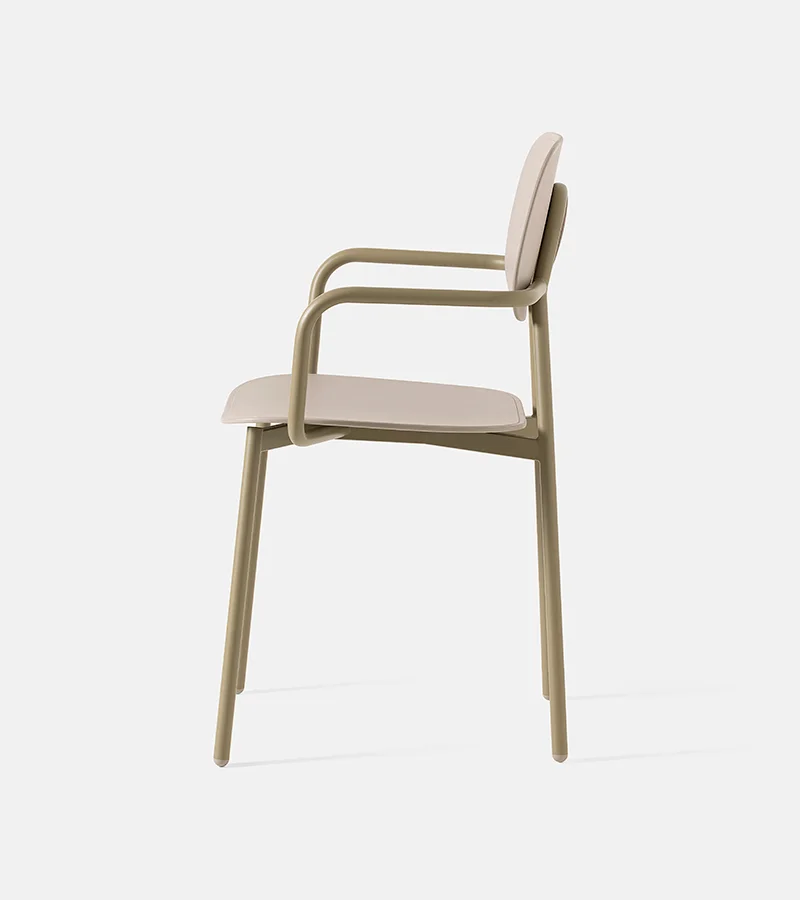 Le soutien ergonomique des accoudoirs caractérise cette variante de la collection, pensée pour offrir une posture stable et un design encore plus abouti. La structure métallique intègre des éléments latéraux qui élargissent ses possibilités d'usage sans alourdir la ligne originale. Disponible dans de nombreuses finitions, cette chaise s'intègre avec justesse aussi bien dans une salle à manger que dans des espaces de direction. Un modèle éprouvé qui sait se réinventer avec cohérence.