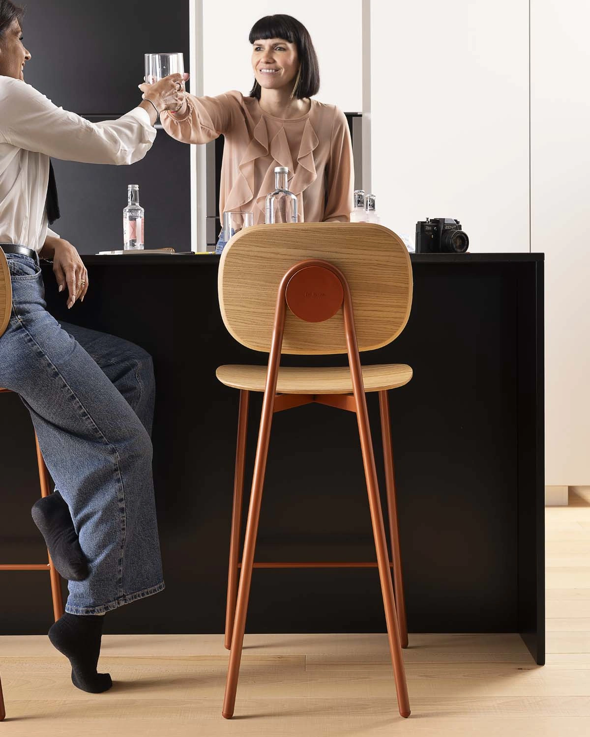 Qui sgabelli, sedie e tavoli sono usati continuamente. Devono resistere all’uso quotidiano, rendere semplici i movimenti e confortevole la seduta.