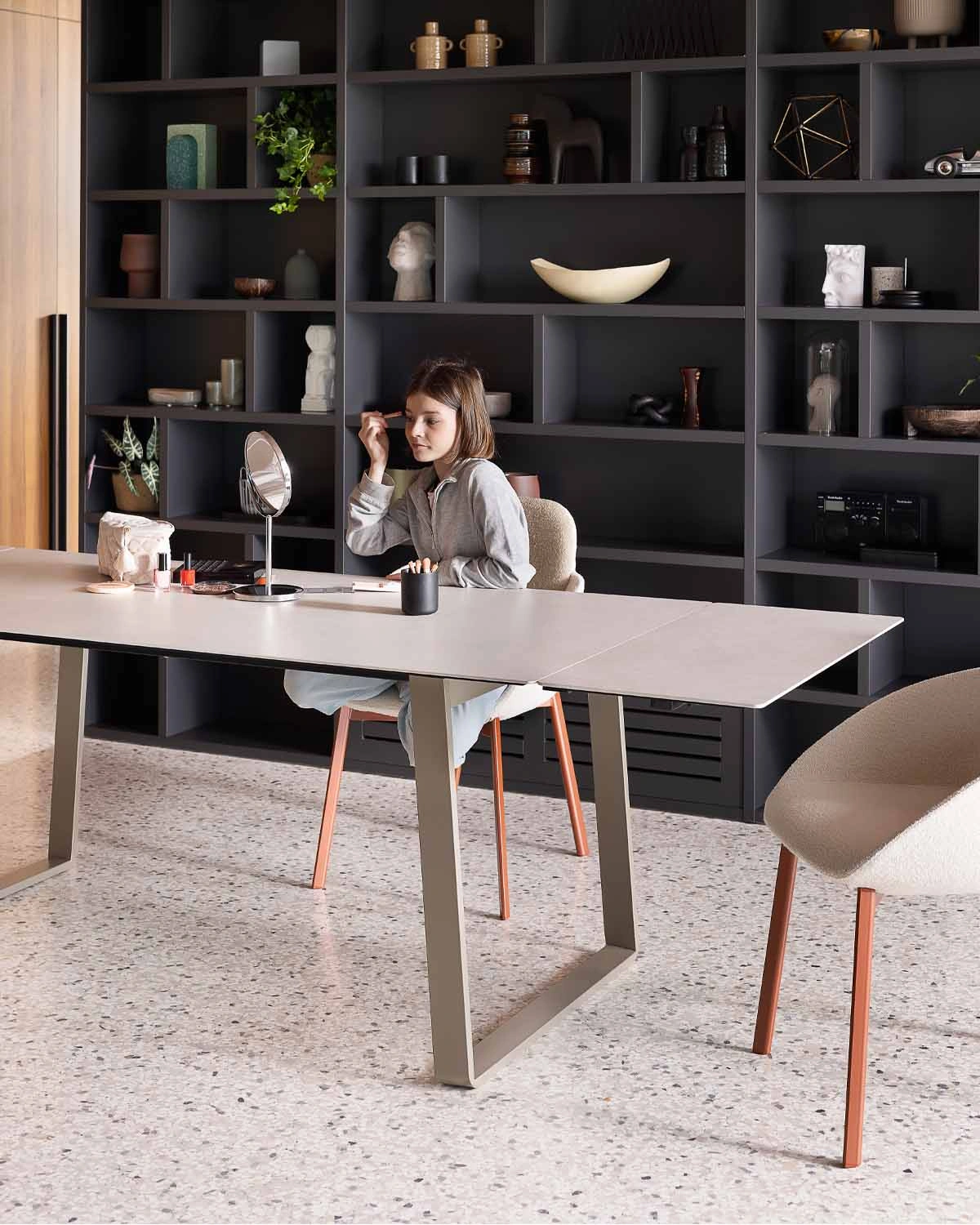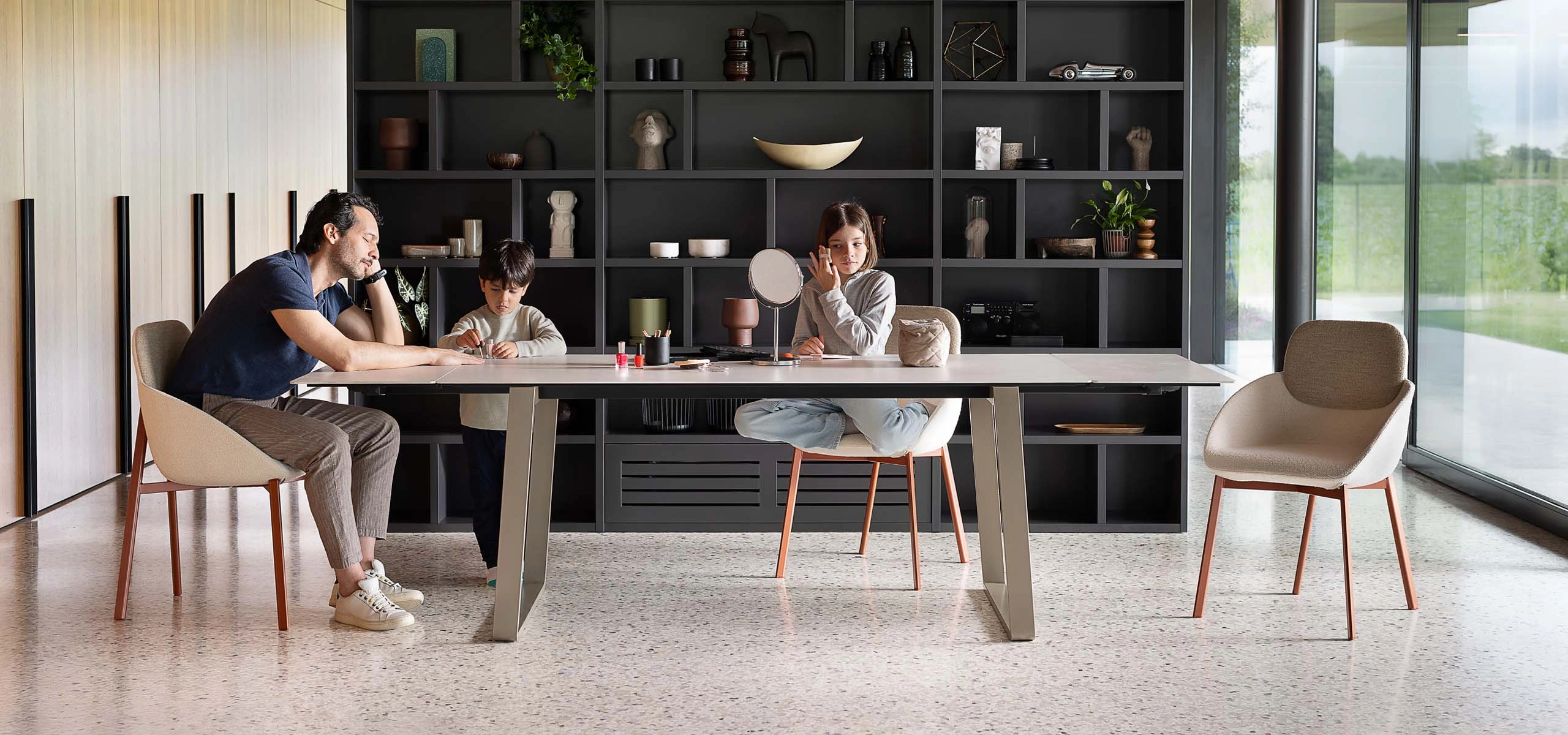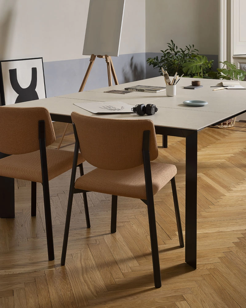 Tavolo e sedie stanno al centro di tutto questo. Organizzano l’ambiente, guidano i movimenti nella stanza e influenzano il modo in cui viene vissuta la zona giorno.