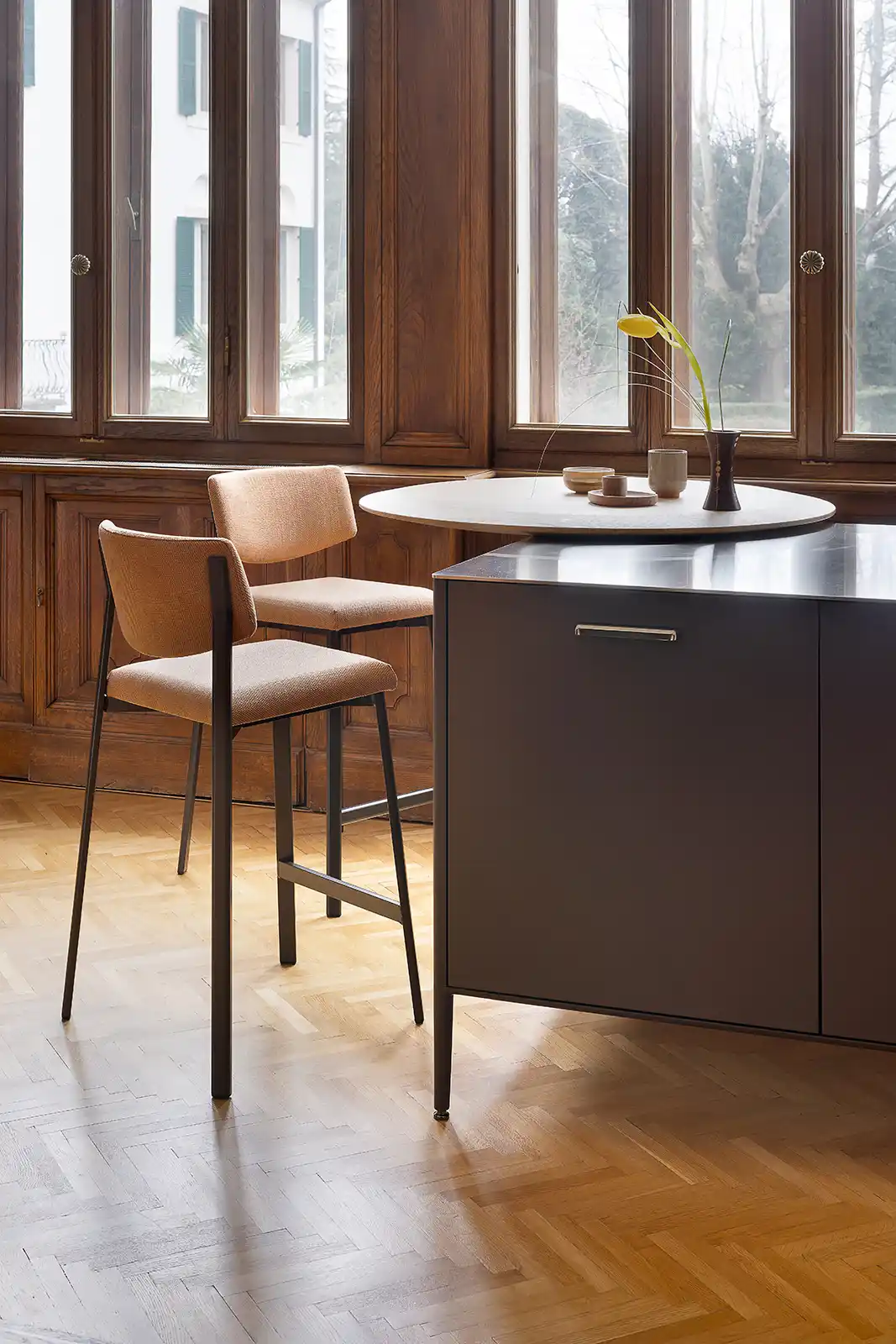 L'aspetto contemporaneo di Beba Soft si eleva in questa versione sgabello, dove l'aggiunta delle imbottiture esalta il piacere della seduta. Le linee nette della struttura in alluminio estruso contrastano con la morbidezza dello schienale, creando un equilibrio perfetto tra rigore e relax. È una soluzione studiata per chi non vuole rinunciare al comfort nemmeno intorno a un piano snack o un bancone bar. Resistente, colorato e impilabile, arreda gli spazi con un tocco di eleganza.