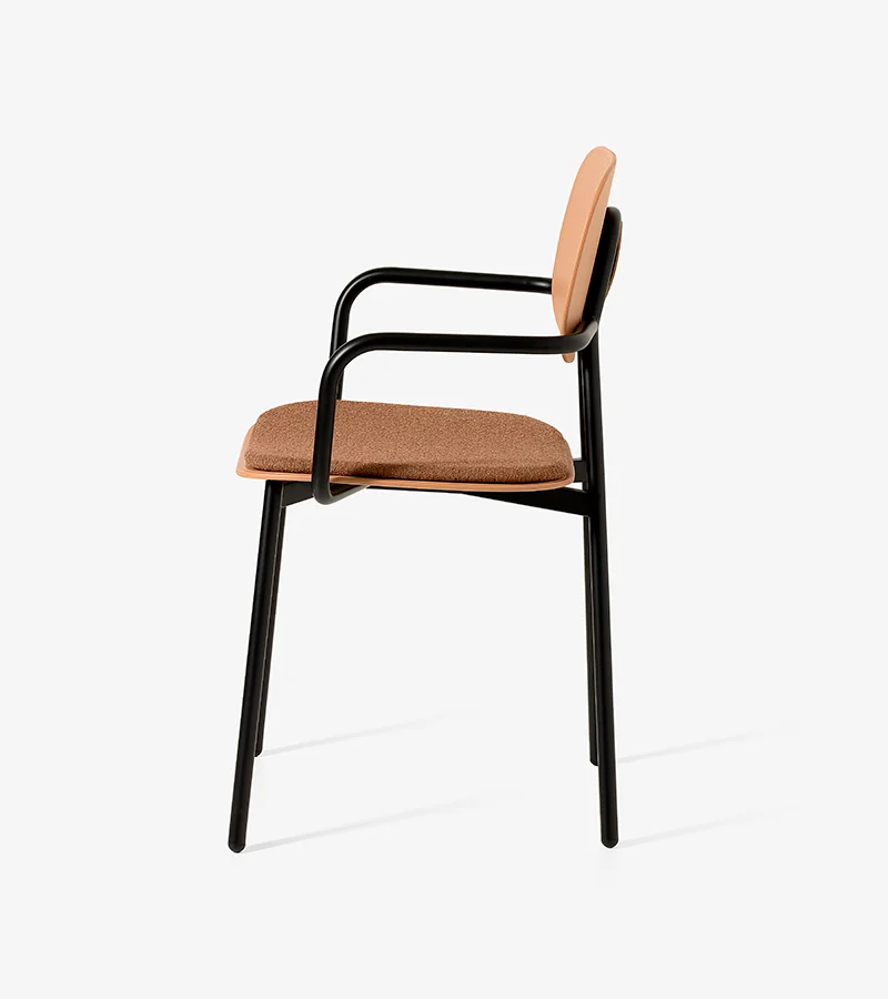 Il supporto ergonomico dei braccioli definisce questa variante della collezione, studiata per offrire una postura stabile e un design ancora più completo. La struttura metallica accoglie l'aggiunta di elementi laterali che ne ampliano le possibilità d'uso senza appesantire la linea originale. Disponibile in molteplici finiture della gamma, questa sedia arreda con intelligenza sia la sala da pranzo che gli spazi direzionali. Un prodotto consolidato che sa reinventarsi con estrema coerenza.